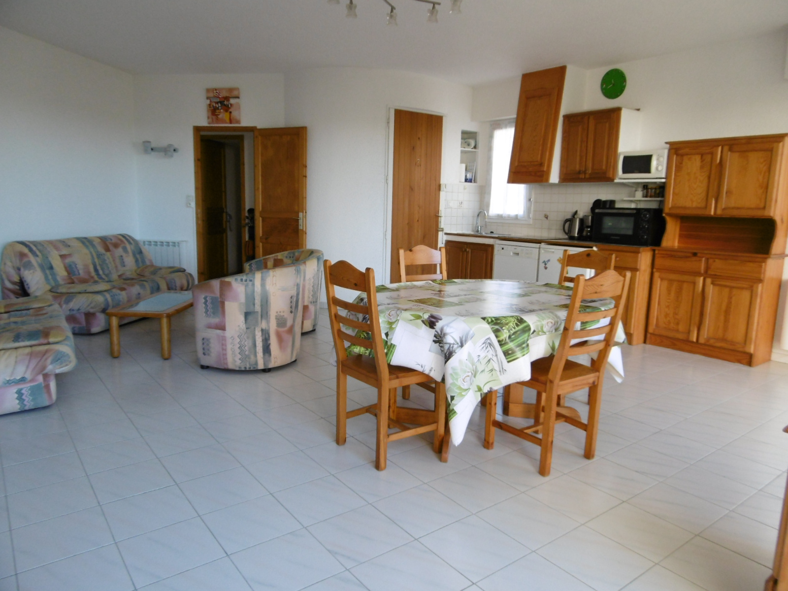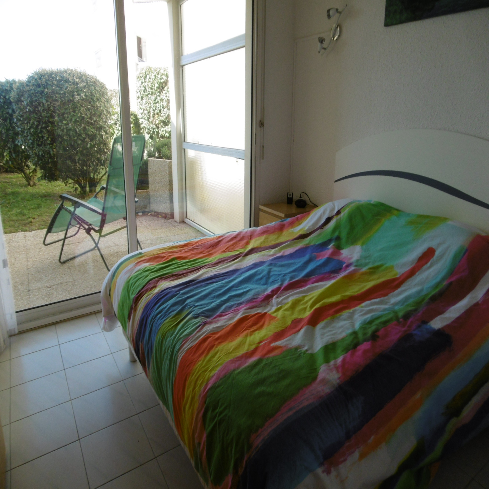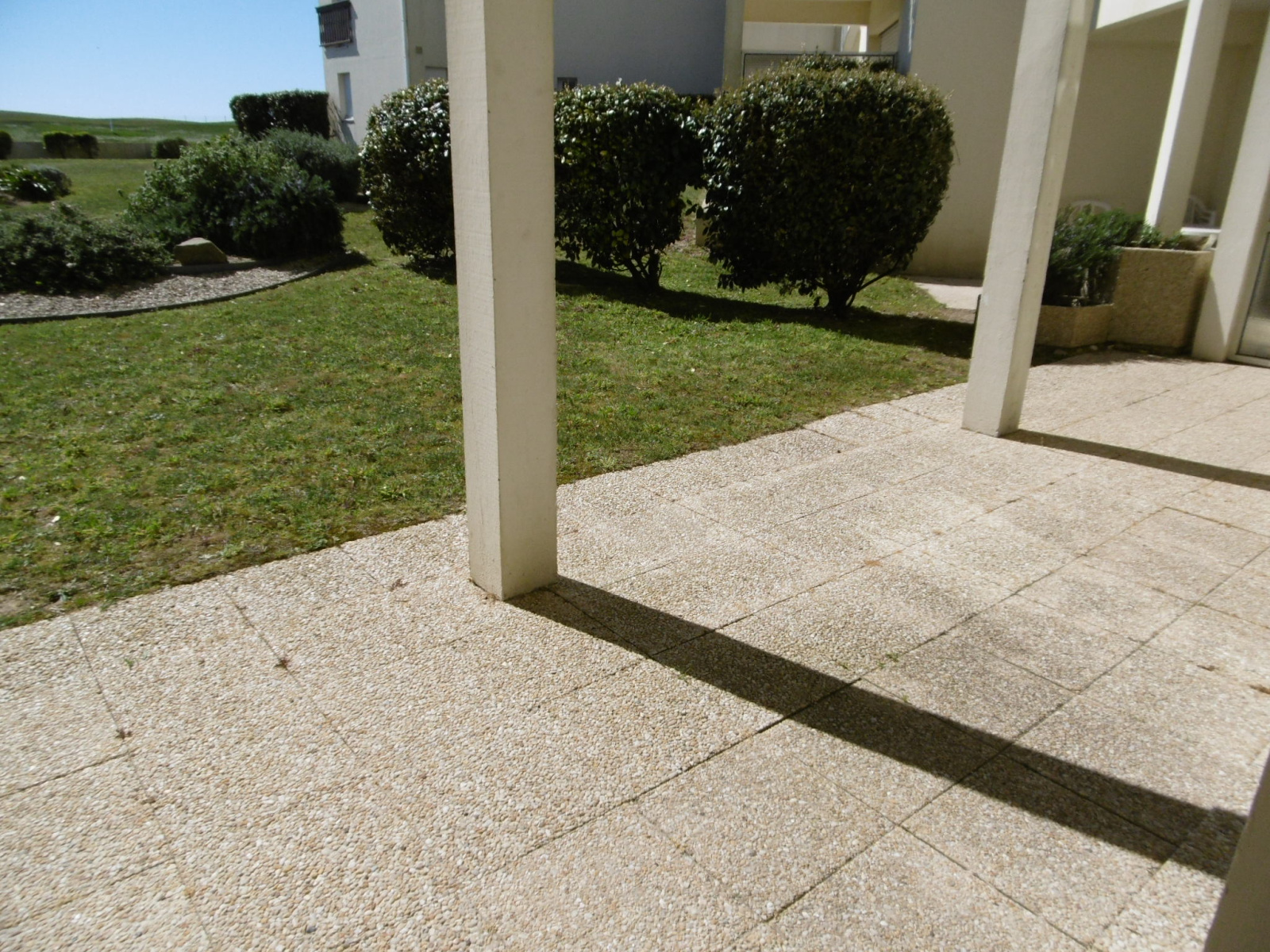 Quartier du Golf - Au rez-de-chaussée d'une résidence à côté du practice, spacieux appartement de type 4 de 79 m², avec un garage et un local commun pour les vélos, comprenant: un coin cuisine ouvert sur un séjour donnant sur une grande terrasse exposée sud-ouest offrant une vue dégagée sur les jardins de la copropriété, trois chambres dont une avec un placard, une salle d'eau, une salle de bains avec une fenêtre, deux WC et une lingerie - Double vitrage - Chauffage électrique - Appartement soigné et très lumineux.
