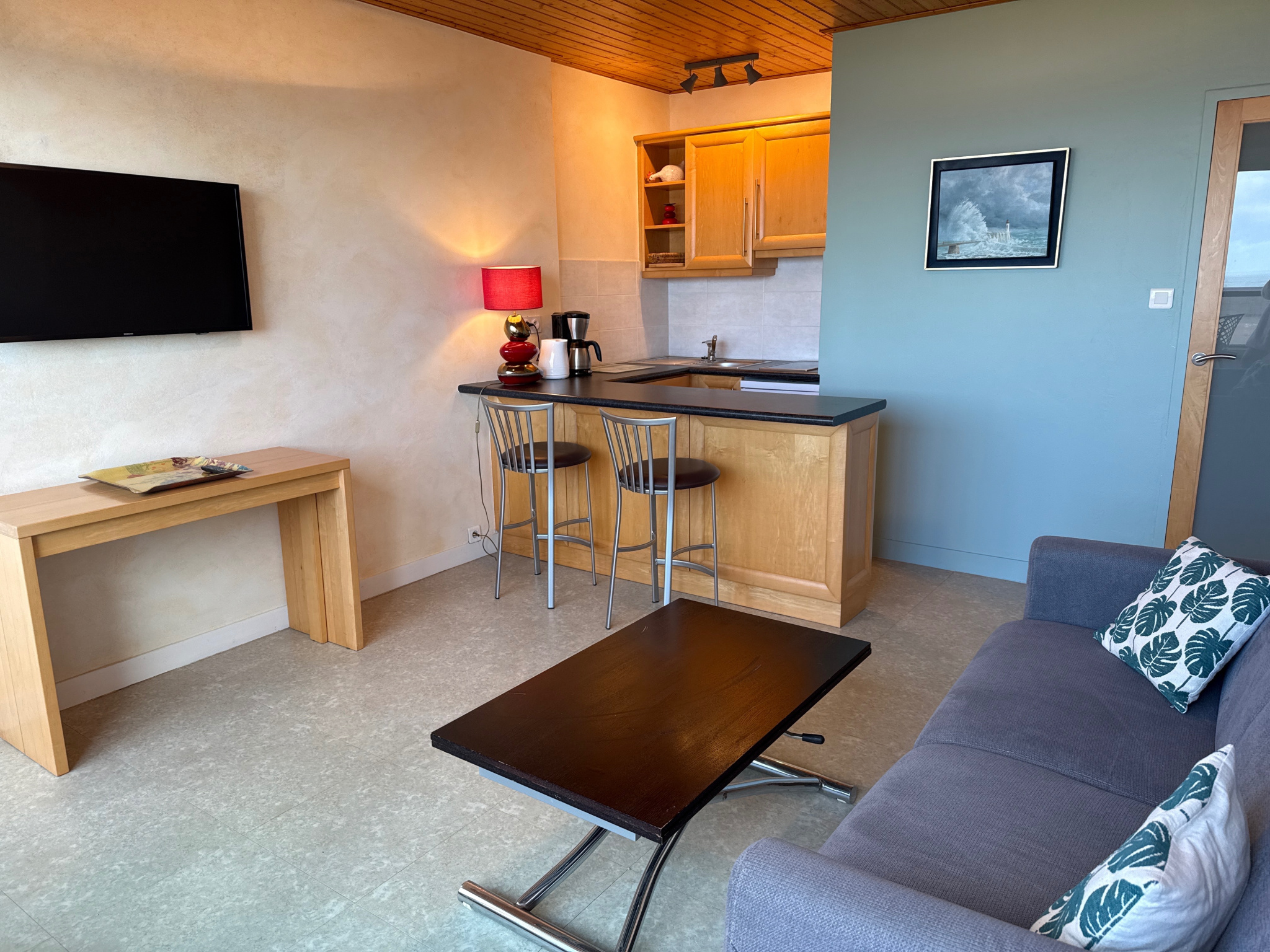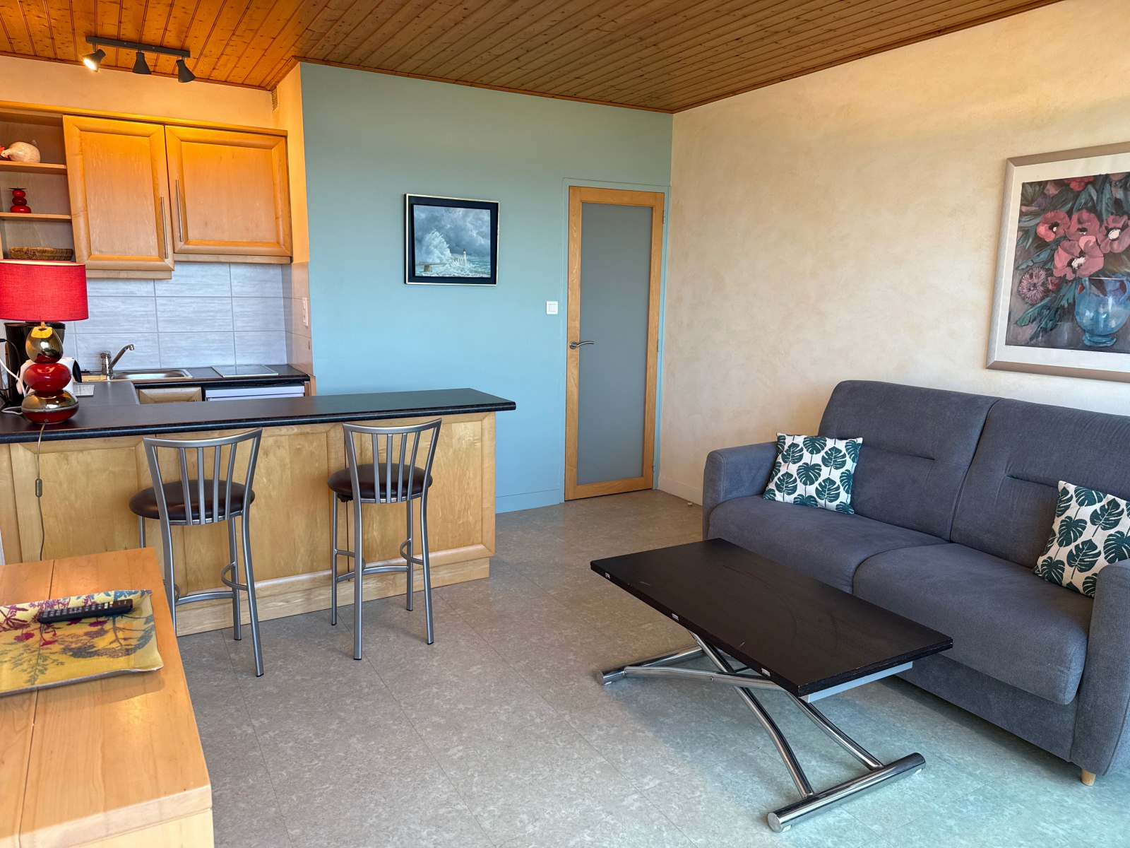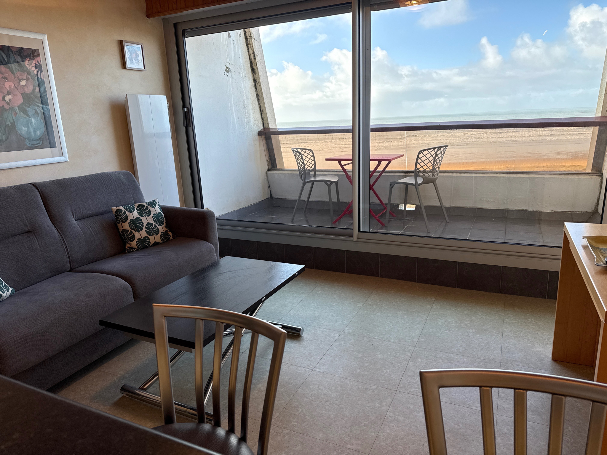 Au 5ème étage d'une résidence avec un ascenseur face à l'Estacade et à deux pas de l'Ecole de Voile, cet appartement de type 2, avec un parking privé, se compose d'une entrée, d'une cuisine équipée ouverte sur un séjour donnant sur un balcon face à l'Océan, d'une chambre avec des rangements sur mesure et un lit double escamotable, d'une salle d'eau, de WC indépendants et d'un cellier - Ouvertures changées - Volet roulant électrique dans le séjour - Tableau électrique refait - Store-banne électrique avec un coffre.