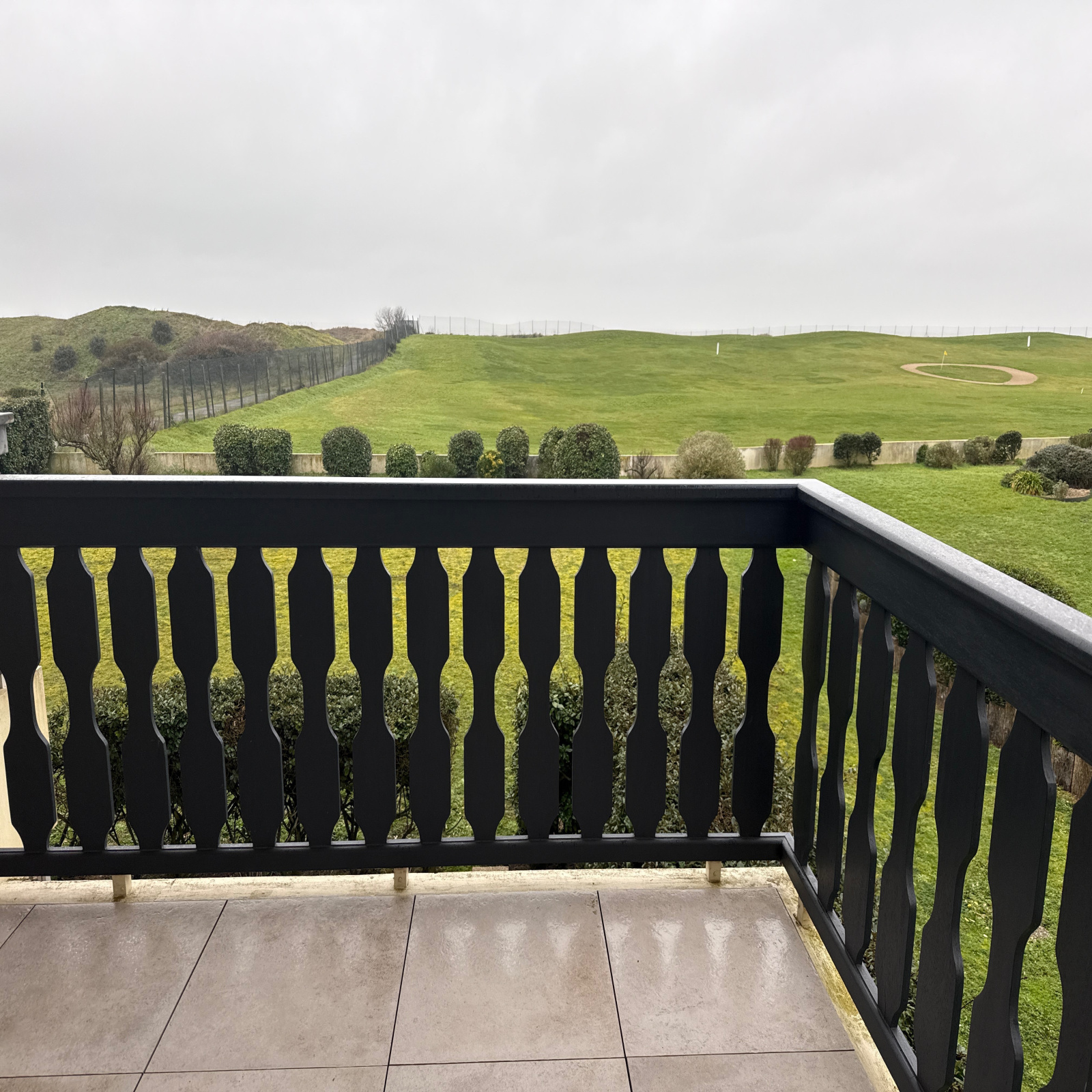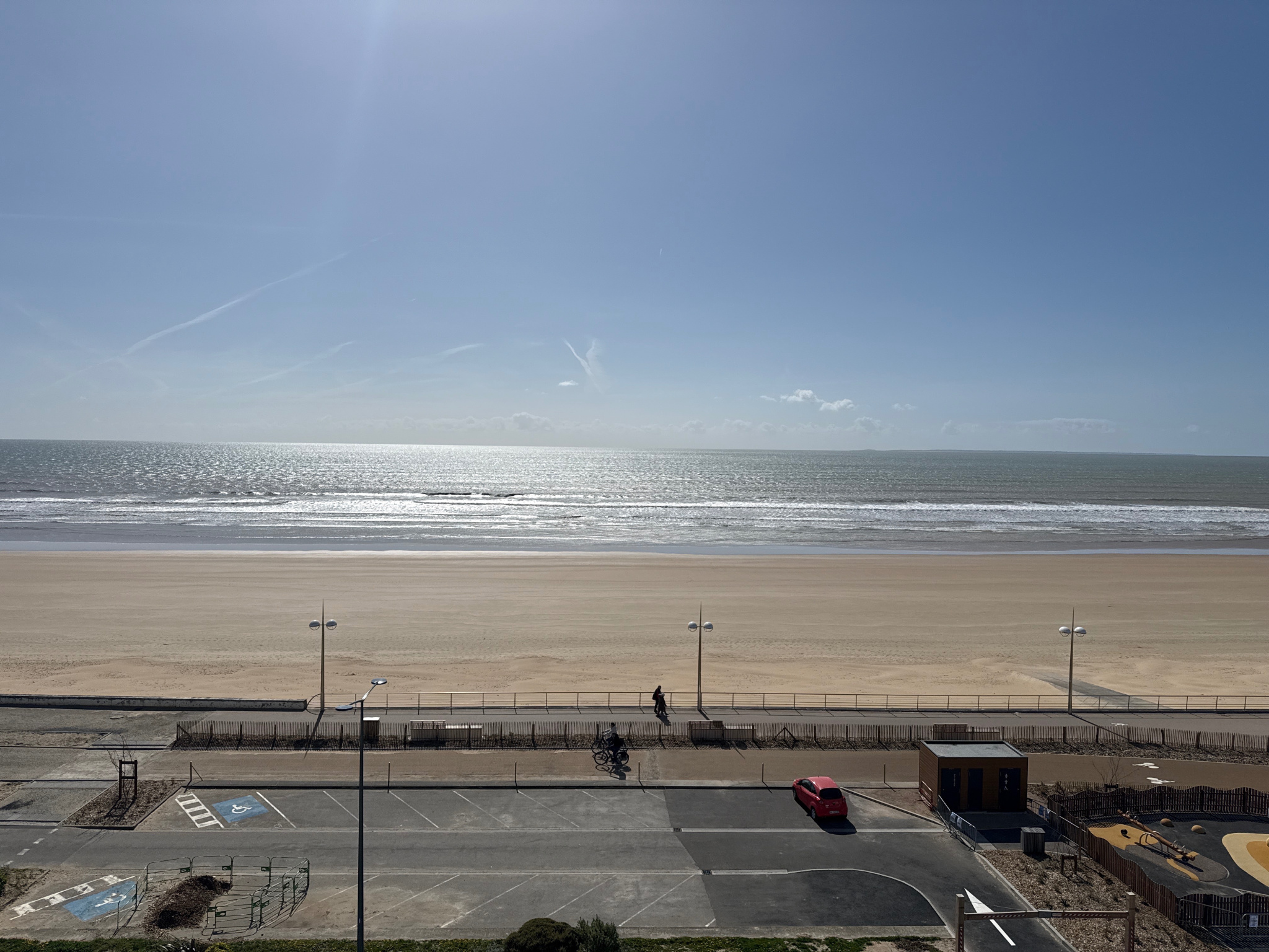 Quartier du Golf - Au 1er étage d'une petite copropriété à faibles charges, avec un local commun pour les vélos, ce bel appartement traversant de type 3 de 66 m², avec un garage et un parking privé se compose: d'une entrée-dégagement avec un placard et un coin lingerie, d'une cuisine équipée donnant sur un balcon, d'une chambre, avec sa propre salle d'eau avec des WC, donnant aussi sur le balcon, d'un séjour donnant sur un deuxième balcon offrant une vue sur la plage, les dunes et le practice, d'une chambre avec un placard et d'une salle d'eau avec des WC - Ce bien est vendu meublé.