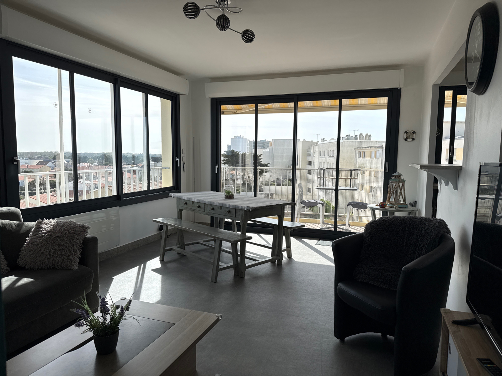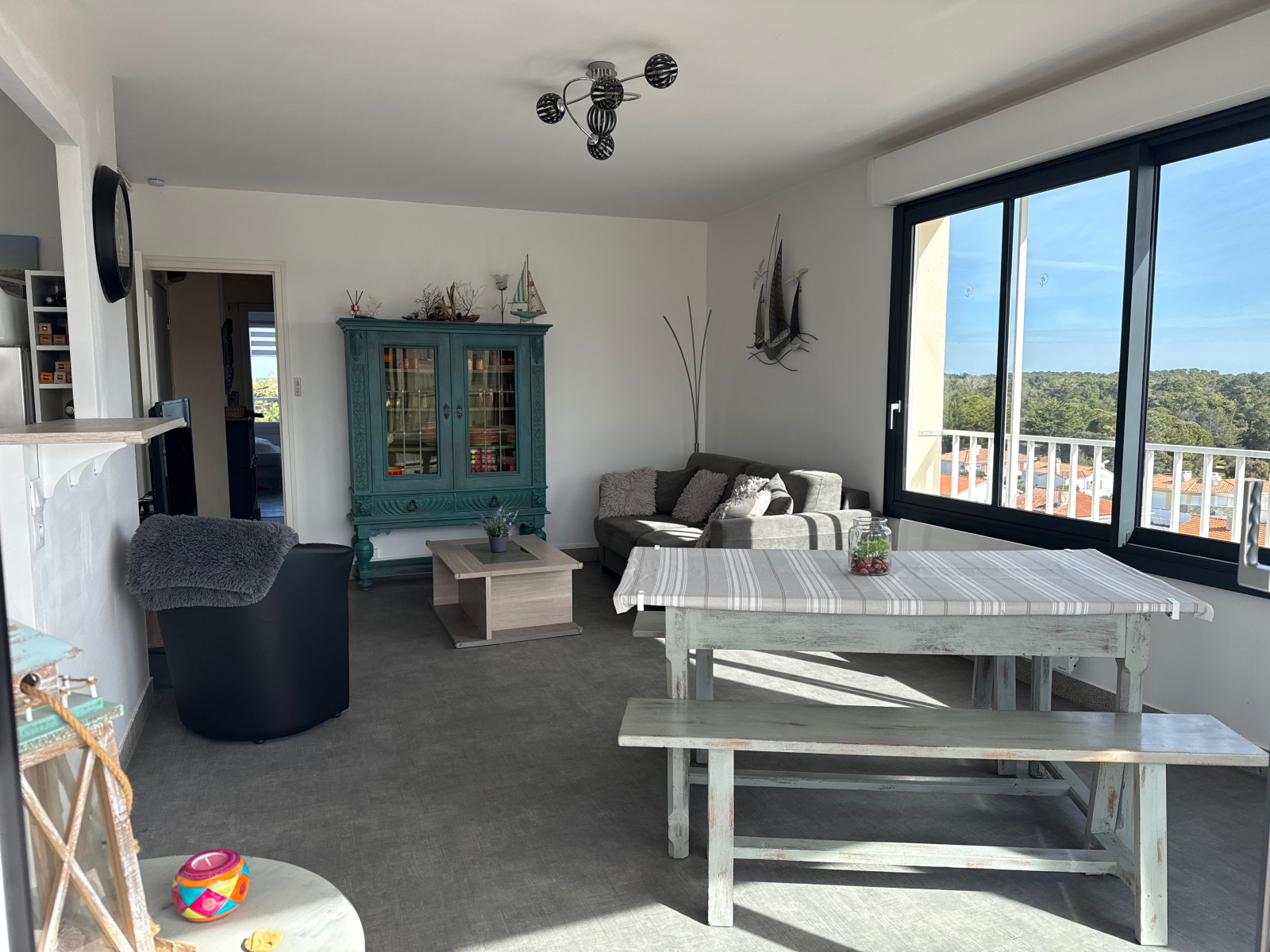 Quartier des Demoiselles - Au 4ème étage d'une résidence avec un ascenseur et un parking collectif à l'angle de l'Esplanade et de l'Avenue des Pins, ce spacieux T3 rénové, avec une cave, se compose d'une entrée avec un placard, d'une cuisine équipée ouverte sur un séjour donnant sur un balcon offrant une vue latérale mer et sur la forêt, d'une salle de bains avec une fenêtre, de WC indépendants avec une fenêtre et de deux chambres dont une avec un placard - Prestations de qualité - Possibilité de garage - Forêt et commerces ouverts à l'année à proximité.