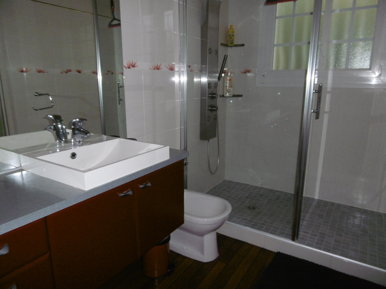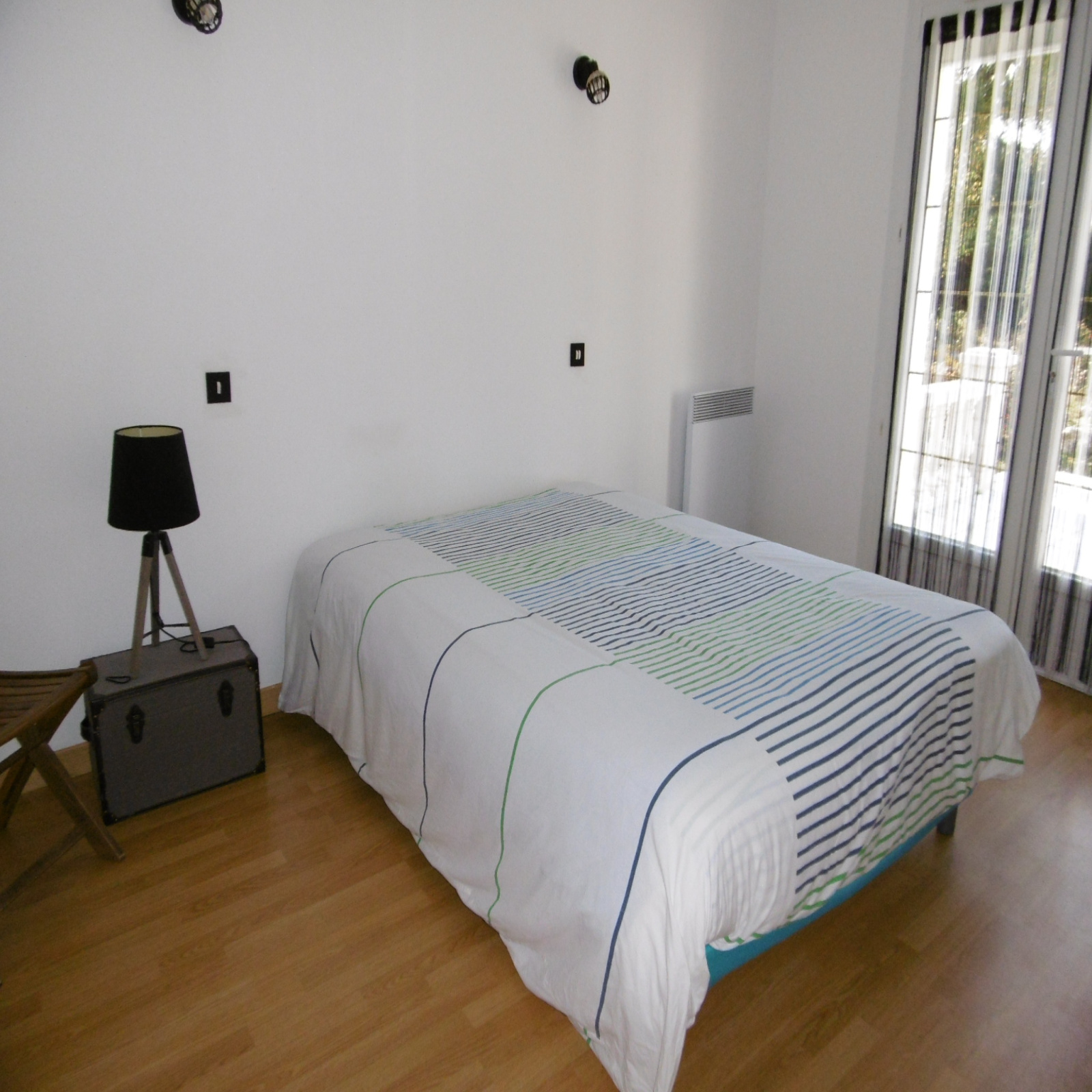 Au rez-de-chaussée: une entrée-dégagement avec un placard, un séjour avec une cheminée insert, une cuisine équipée, un cellier, des WC, une salle d'eau avec un placard et trois chambres dont deux avec chacune un placard et dont deux avec un accès direct à la terrasse.