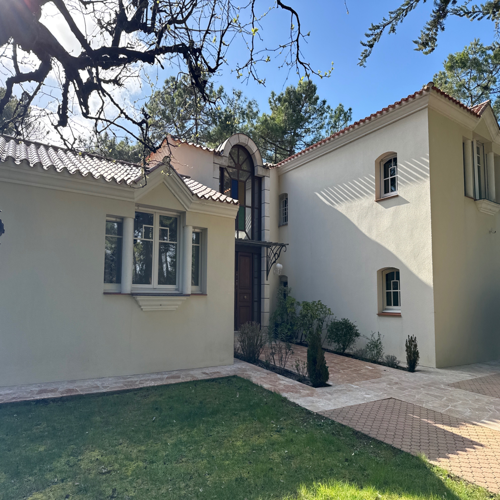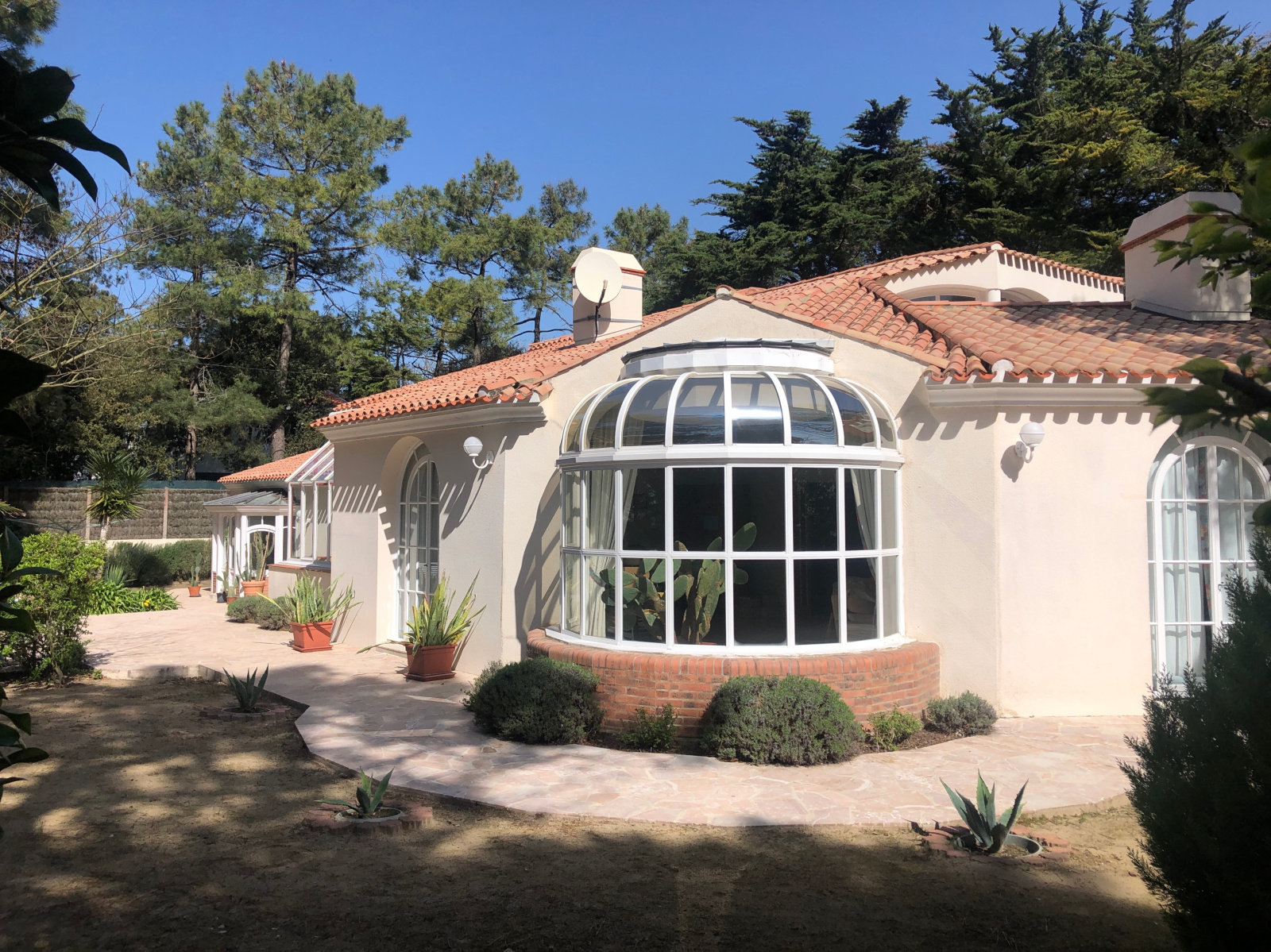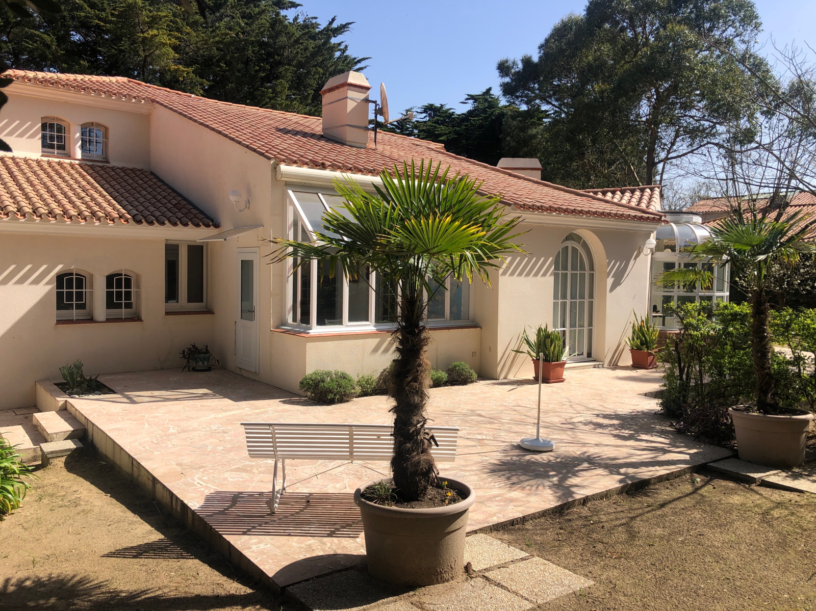 Avenue des Demoiselles - Dans un quartier très prisé de Saint Jean de Monts, entre la plage et le centre ville, cette spacieuse maison d'architecte de 384 m² de type 6 avec garage de 34 m², située sur un terrain clos et paysagé de 1761 m², est idéale en résidence principale ou en secondaire. Au rez-de-chaussée, vous trouverez: une entrée, des WC, une cuisine indépendante équipée avec un coin repas, un séjour avec une cheminée et une verrière offrant une belle vue sur le jardin, une lingerie, une salle d'eau avec des WC, un atelier, une salle de sport, une salle de jeux, une chambre ayant sa propre salle d'eau avec des WC et un coin nuit composé d'un bureau, d'une chambre, d'une salle de bains avec douche et baignoire et de WC. Puis un bel escalier vous conduira à l'étage où un grand palier dessert trois chambres, une salle d'eau, des WC et un grenier - Prestations de qualité.