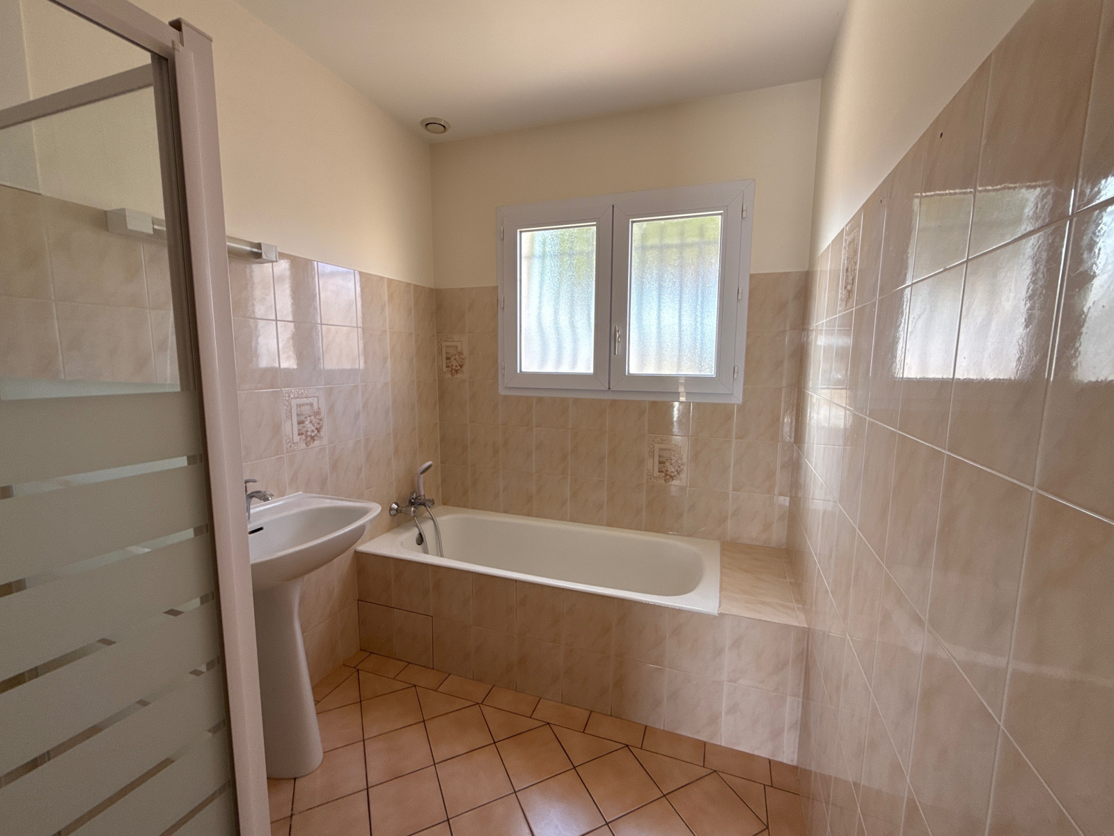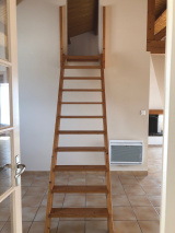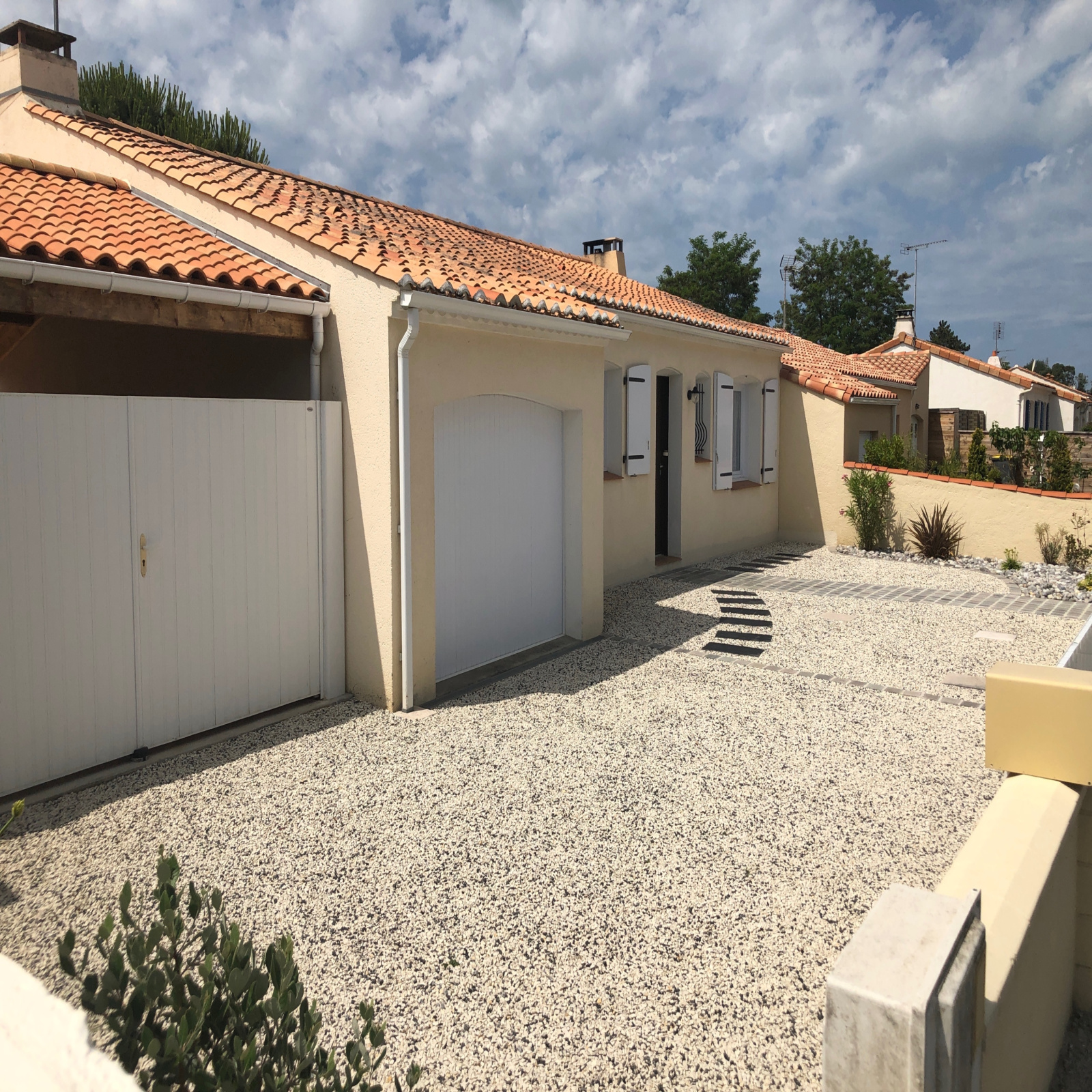 Au calme d'une impasse habitée à l'année, sur un terrain clos de 495 m², cette maison de type 3 mezzanine se compose d'une entrée-dégagement avec un placard desservant une cuisine équipée ouverte sur un séjour avec une cheminée donnant sur une terrasse exposée sud-ouest sans vis-à-vis, deux chambres avec chacune un placard, une salle de bians avec douche et baignoire et des WC indépendants - Une mezzanine donnant sur le séjour pourra servir de chambre d'appoint - Enfin, un garage attenant de 14 m², un garage indépendant de 17 m² et un carport de 28 m² viennent compléter ce bien - Double vitrage - Installation électrique refaite - Store-banne électrique avec un coffre.
