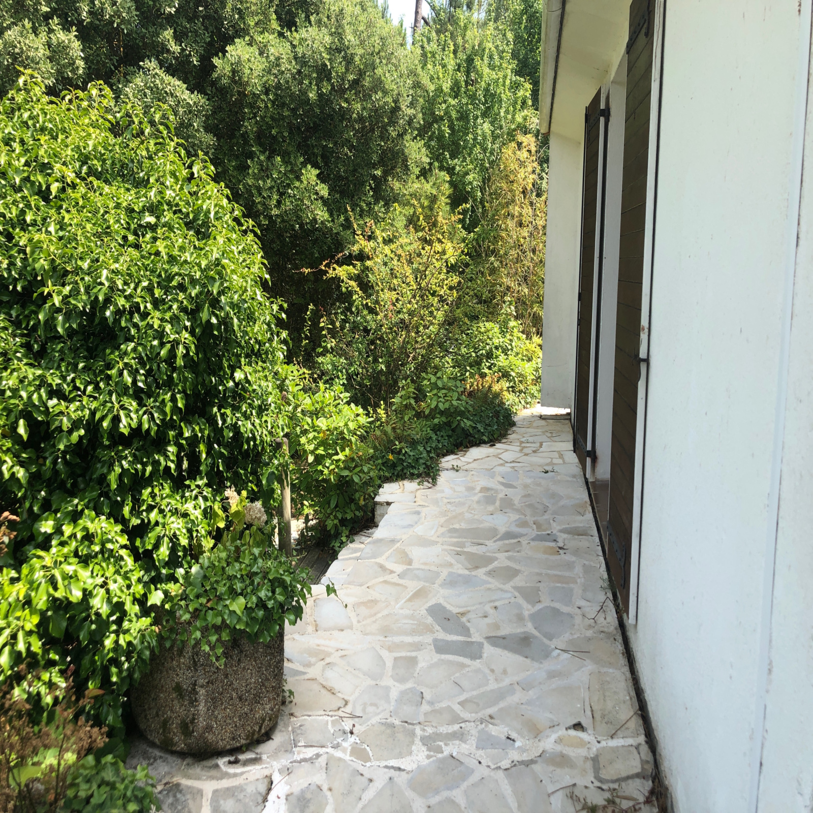 Au fond d'une impasse en lisière de forêt, maison de type 4, avec un grand garage et un préau, située sur un terrain arboré de 1251 m². Cette maison se compose d'une entrée, d'une cuisine, d'un séjour avec une cheminée donnant sur une véranda et d'un dégagement desservant trois chambres avec chacune un placard, une salle d'eau et des WC - Aucune mitoyenneté - A deux pas des pistes cyclables - Beau potentiel.