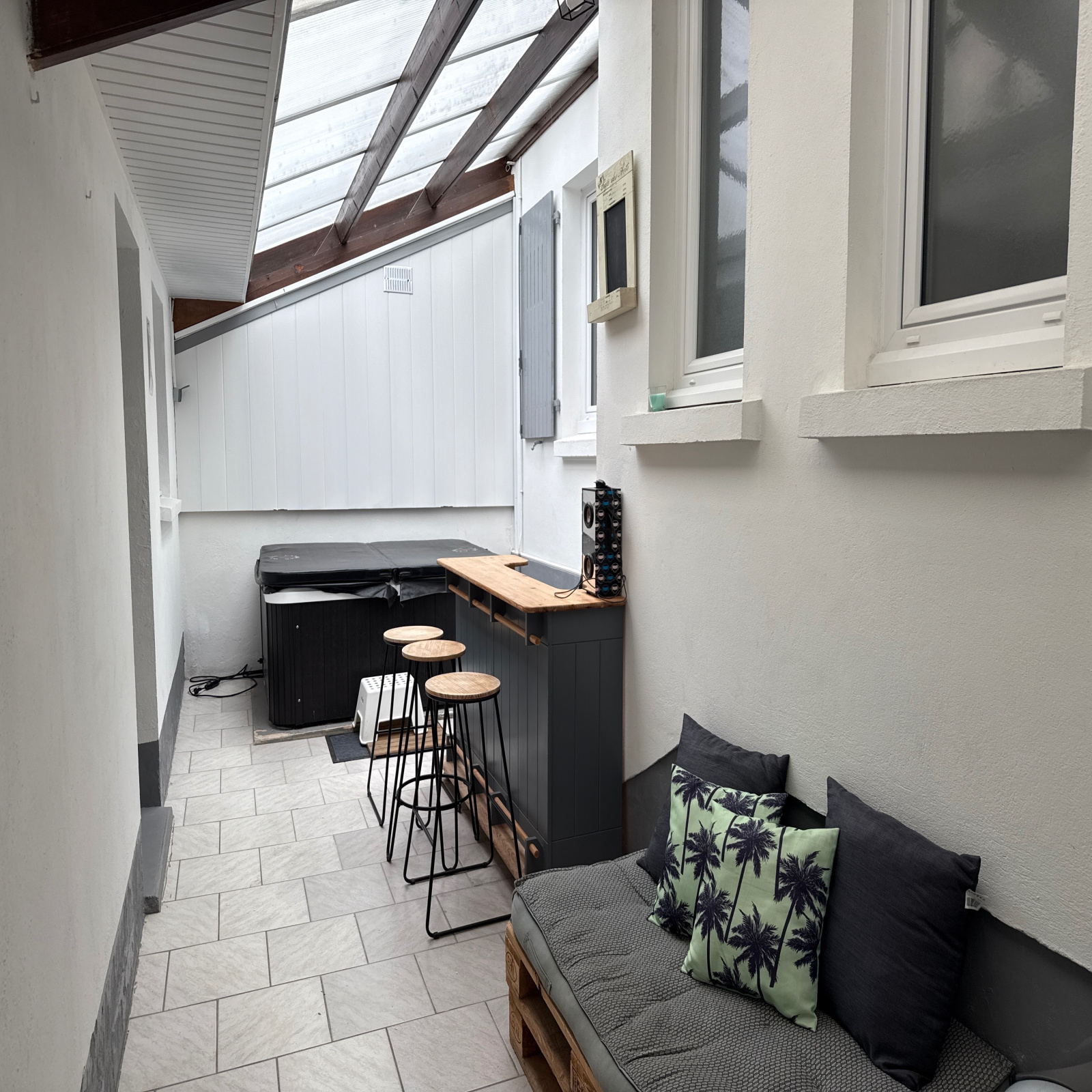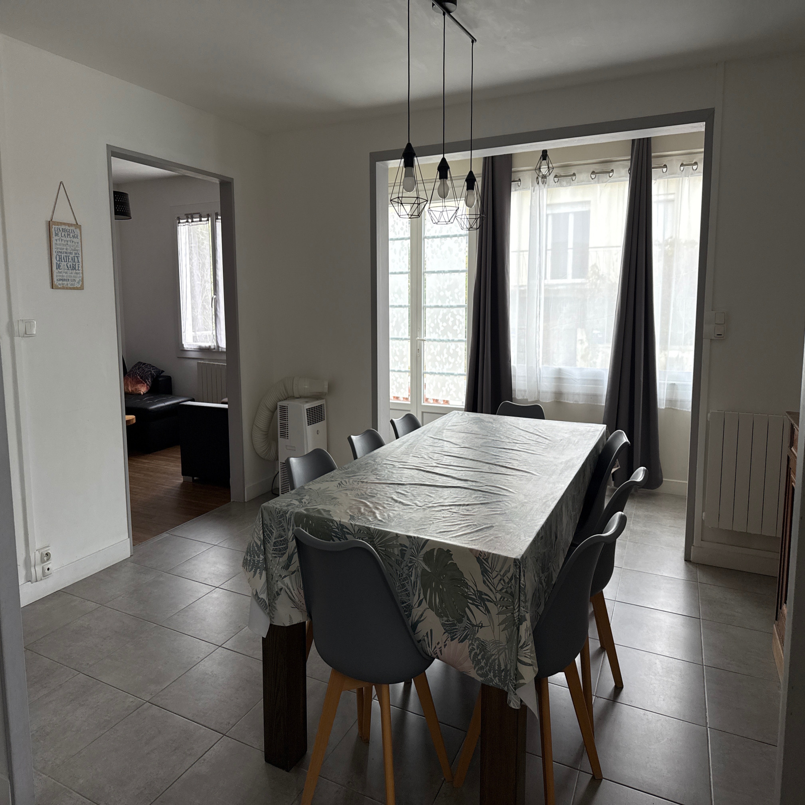 Dans une impasse proche du Centre Ville, cette maison meublée de type 4, avec un garage, se compose d'une entrée, d'une cuisine ouverte sur une salle à manger avec un coin salon, d'une chambre, d'une salle d'eau, de WC indépendants, d'une véranda transformée en coin détente avec un jacuzzi desservant deux autres chambres dont une avec une salle d'eau avec des WC - Double vitrage - Chauffage électrique.