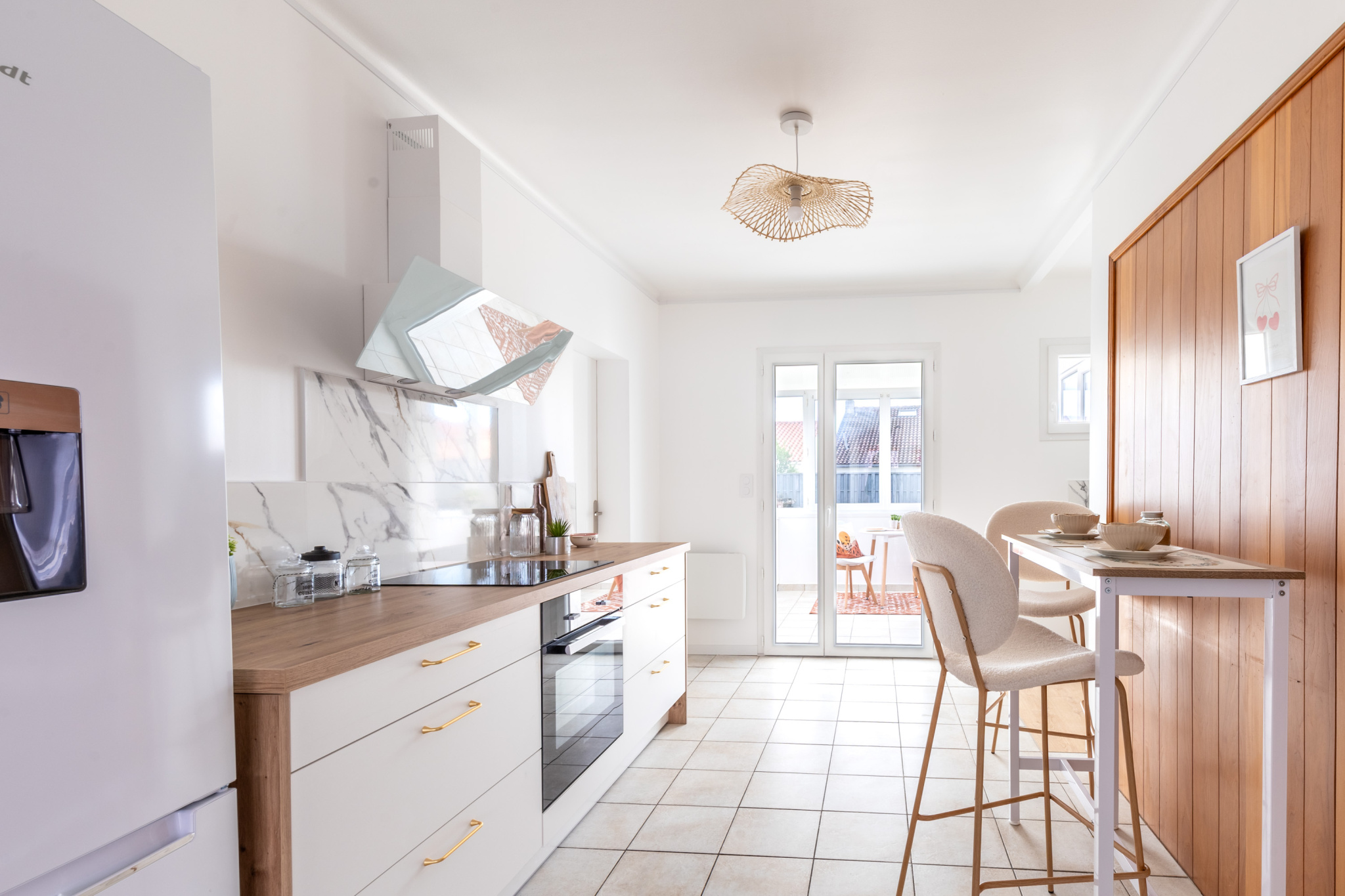 Proche du Centre Ville - Sur un terrain de 283 m², cette maison entièrement rénovée, de 75 m² habitables, se compose: d'une cuisine équipée ouverte sur une pièce de vie de 29 m² très lumineuse, d'une agréable véranda de 9 m² donnant sur un jardin clos, de deux chambres dont une avec un placard, d'une salle d'eau avec une fenêtre, de WC indépendants, d'une lingerie, d'un débarras pouvant être facilement transformé en bureau ou en chambre et de combles aménageables de 11 m² - Possibilité de stationner sur le terrain - Double vitrage - Volets roulants électriques - Electricité refaite - Chauffe-eau changé - Chauffage électrique.