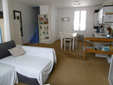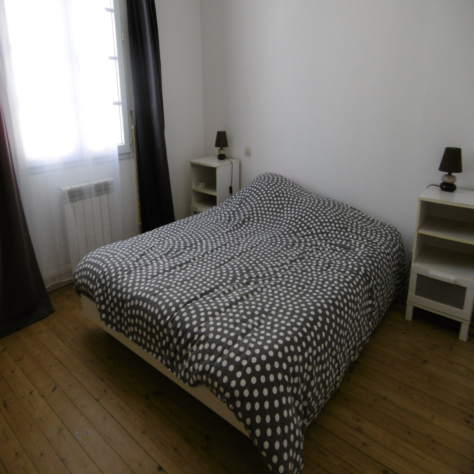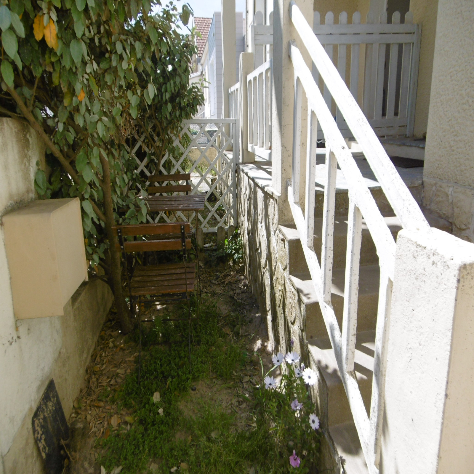 Au rez-de-chaussée: une cuisine équipée ouverte sur un séjour donnant sur un porche accédant à un jardinet exposé sud-est.