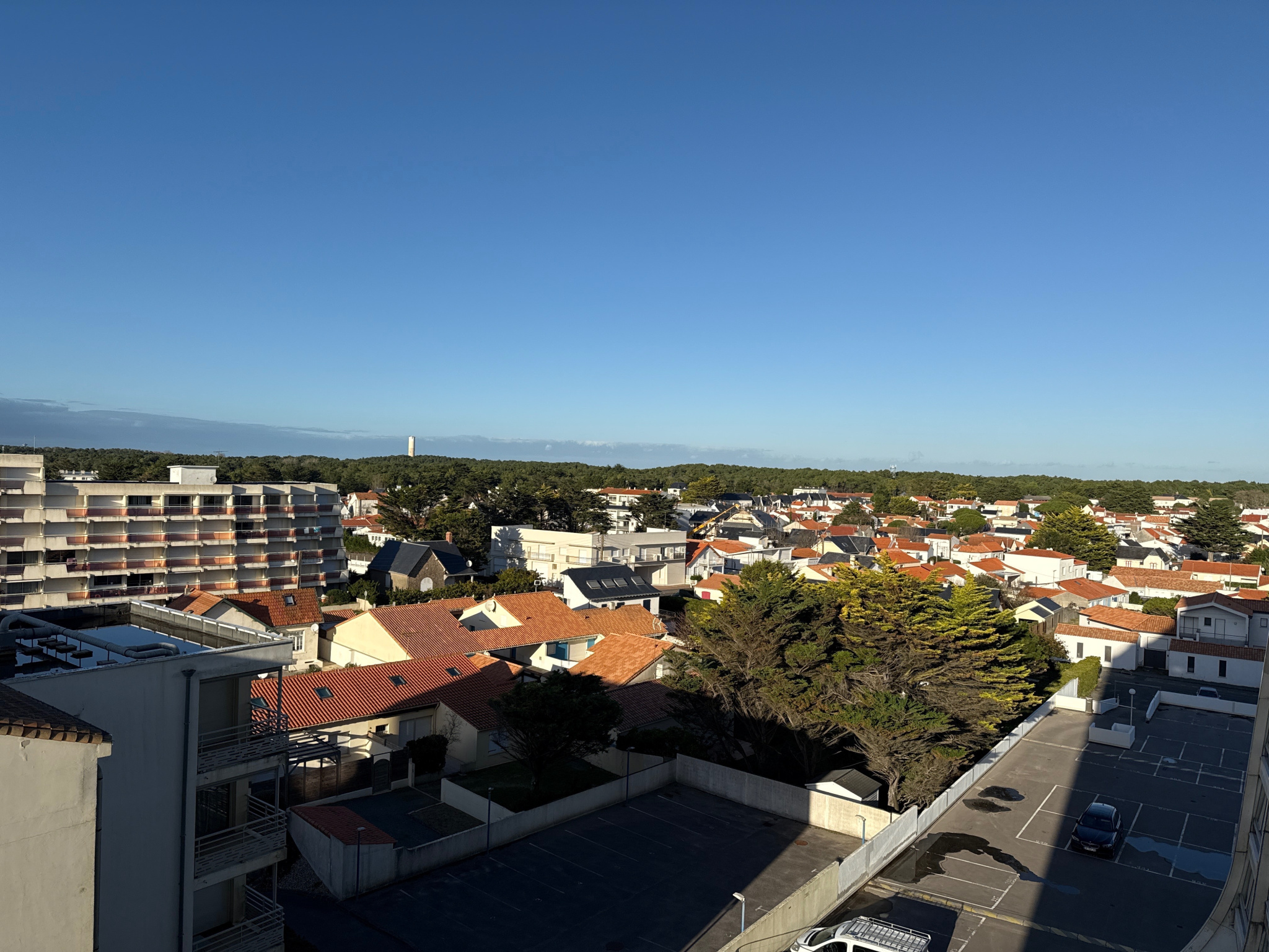 Plage des Demoiselles - Au 5ème étage d'une résidence avec un ascenseur, appartement meublé de type 2, avec une cave et un parking privé, comprenant: un coin cuisine équipé ouvert sur un séjour donnant sur un balcon offrant une vue latérale mer dégagée et sur l'arrière pays, une chambre donnant aussi sur le balcon, une salle d'eau et des WC - A proximité de la forêt et des commerces ouverts à l'année.