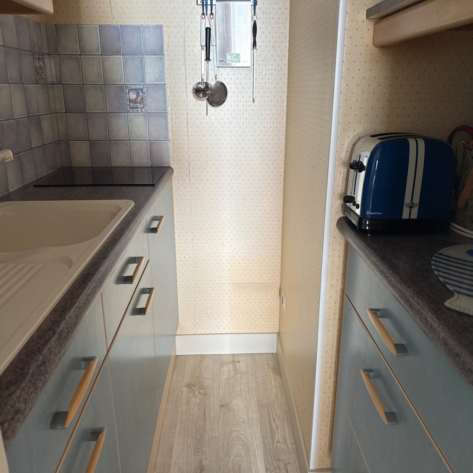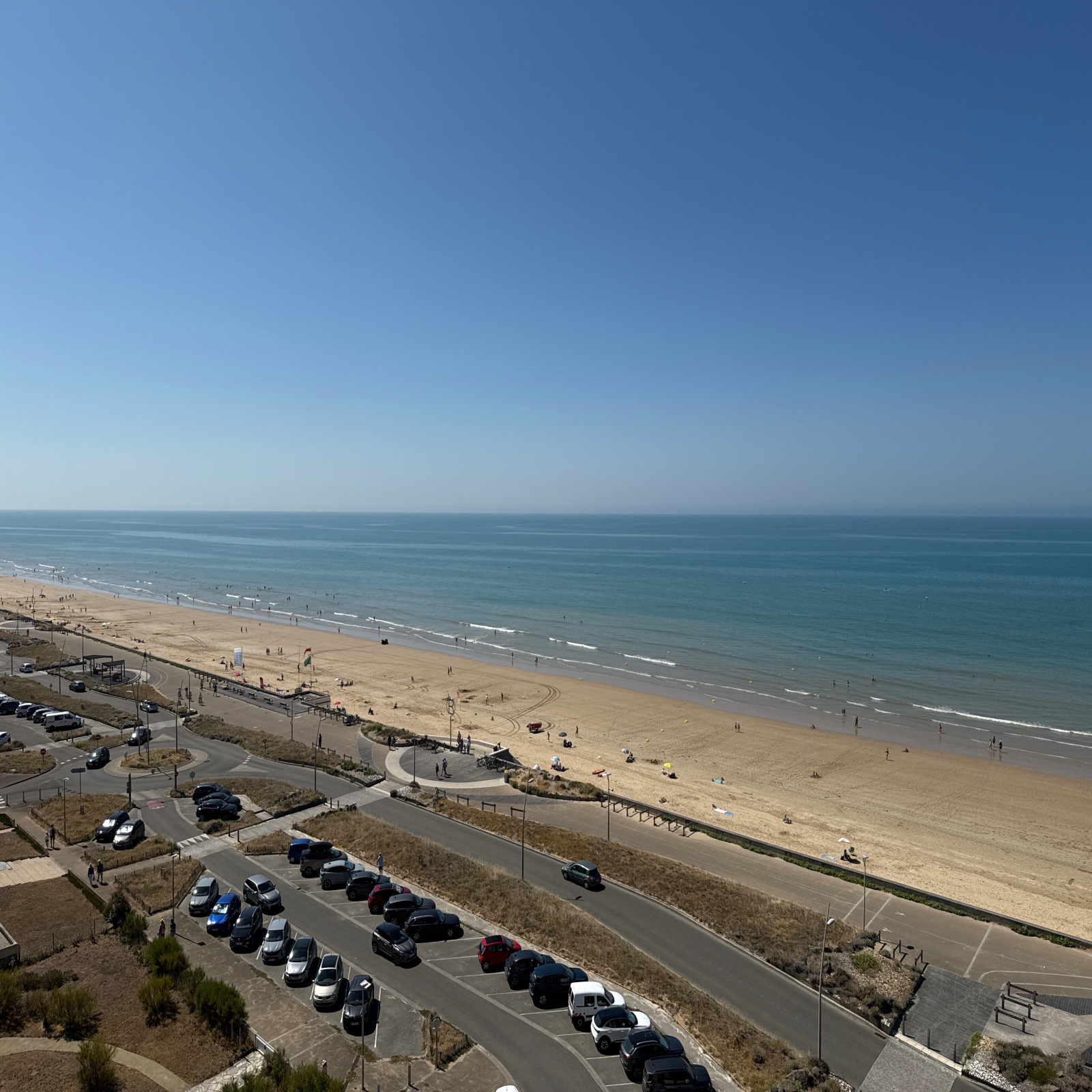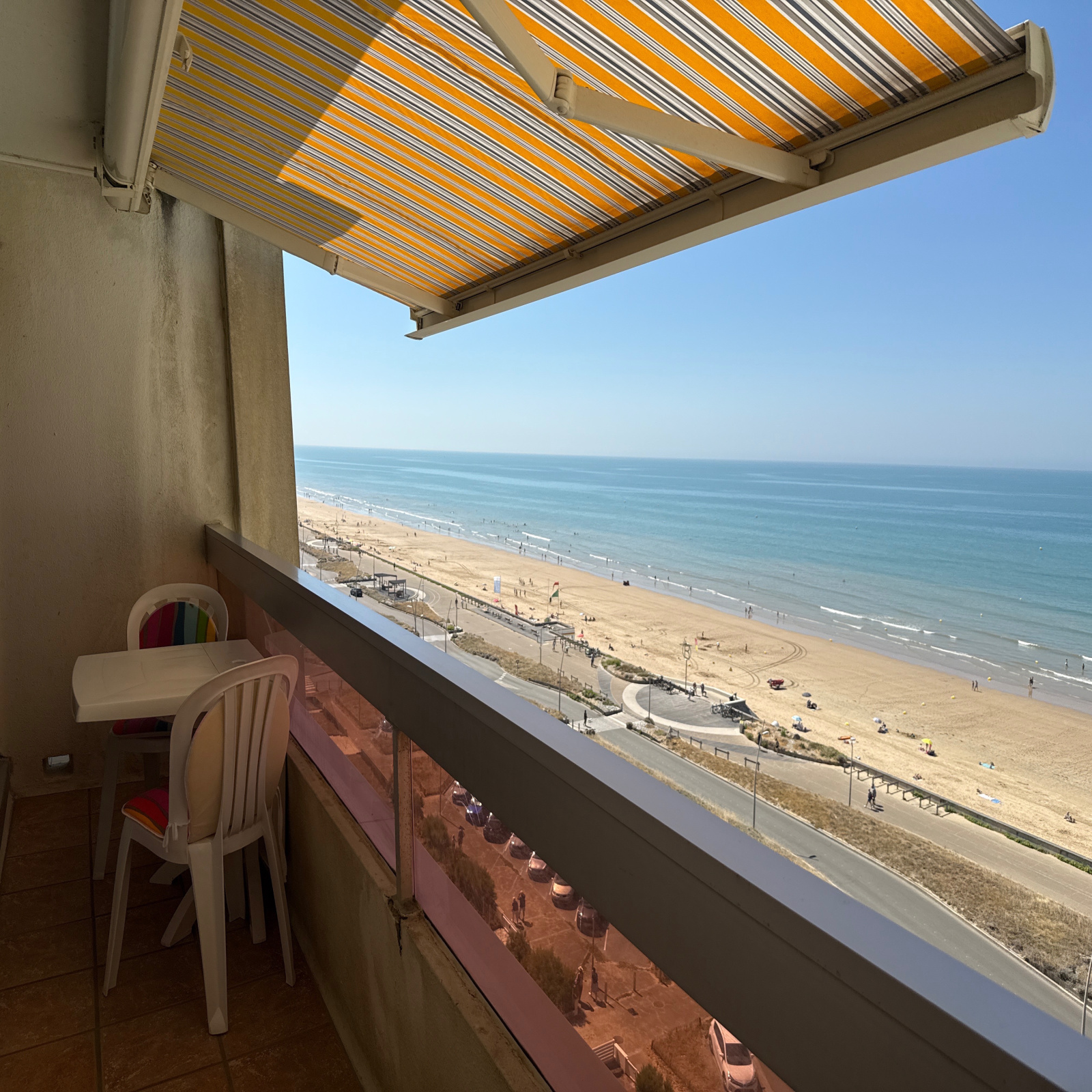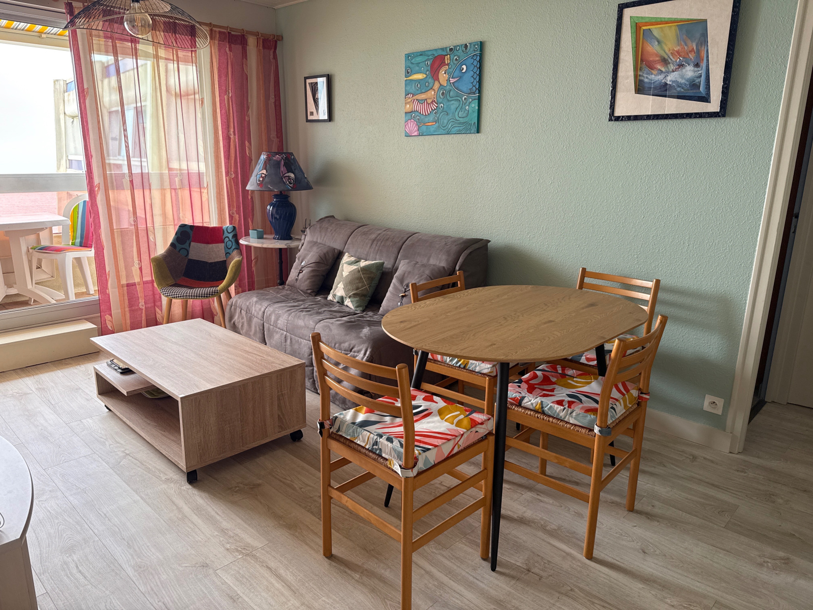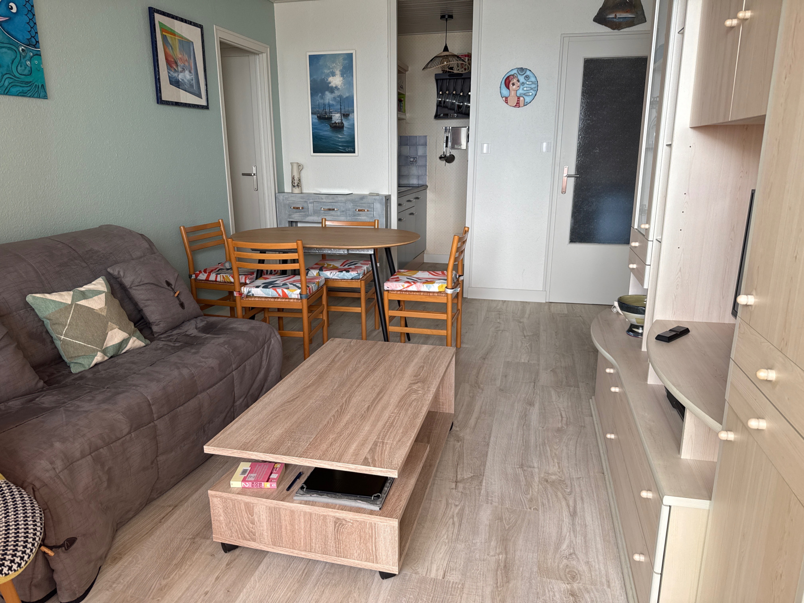 Plage des Demoiselles - Au dernier étage d'une résidence avec un ascenseur, bel appartement de type 2 avec un débarras, une cave et un garage de 21 m² comprenant: une entrée avec un placard, un coin cuisine équipé ouvert sur un séjour donnant sur un balcon face à l'océan, une chambre donnant aussi sur le balcon, une salle d'eau avec un lave-linge séchant et des WC indépendants - Chauffage et chauffe-eau changés - Volets roulants électriques - Store-banne électrique avec un coffre - Meublé avec goût - Proche des commerces ouverts à l'année.