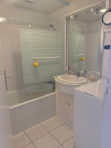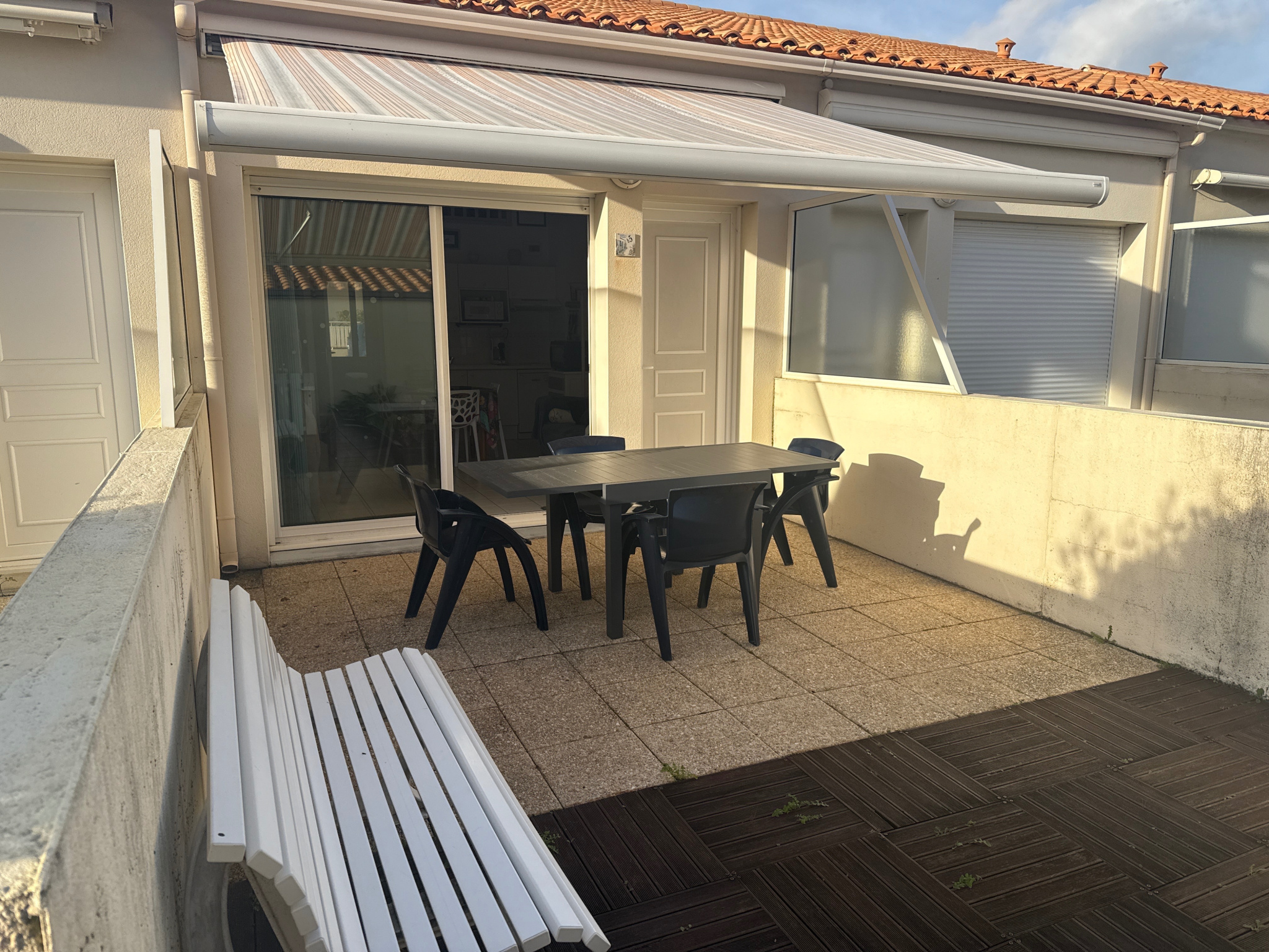 Quartier des Demoiselles - Dans une résidence sécurisée avec une piscine, spacieux T2 mezzanine en rez-de-jardin, avec un parking privé et un local commun pour les vélos, comprenant: un coin cuisine équipé ouvert sur un séjour donnant sur un jardinet clos terrassé exposé sud-est, un dégagement, une salle de bains, des WC, une chambre avec un placard et une chambre en mezzanine avec plusieurs couchages - Double vitrage - Volet roulant électrique dans le séjour - Store-banne électrique avec un coffre - Vendu meublé.