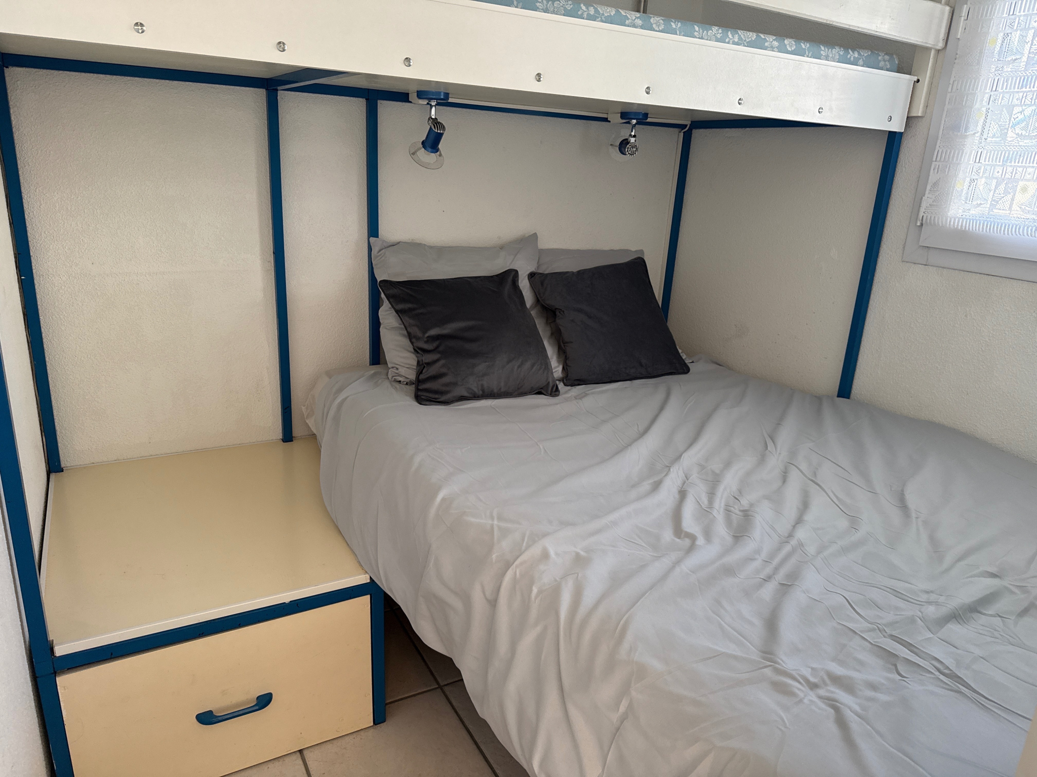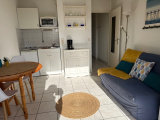 Au 2ème étage d'une résidence à faibles charges, appartement de type 2 meublé, avec un parking privé, comprenant: une entrée, une chambrette, une salle d'eau avec des WC et un coin cuisine équipé ouvert sur un séjour donnant sur un balcon de 4 m² exposé sud-est offrant une vue latérale mer et sur l'arrière pays - Double vitrage - Chauffage électrique.