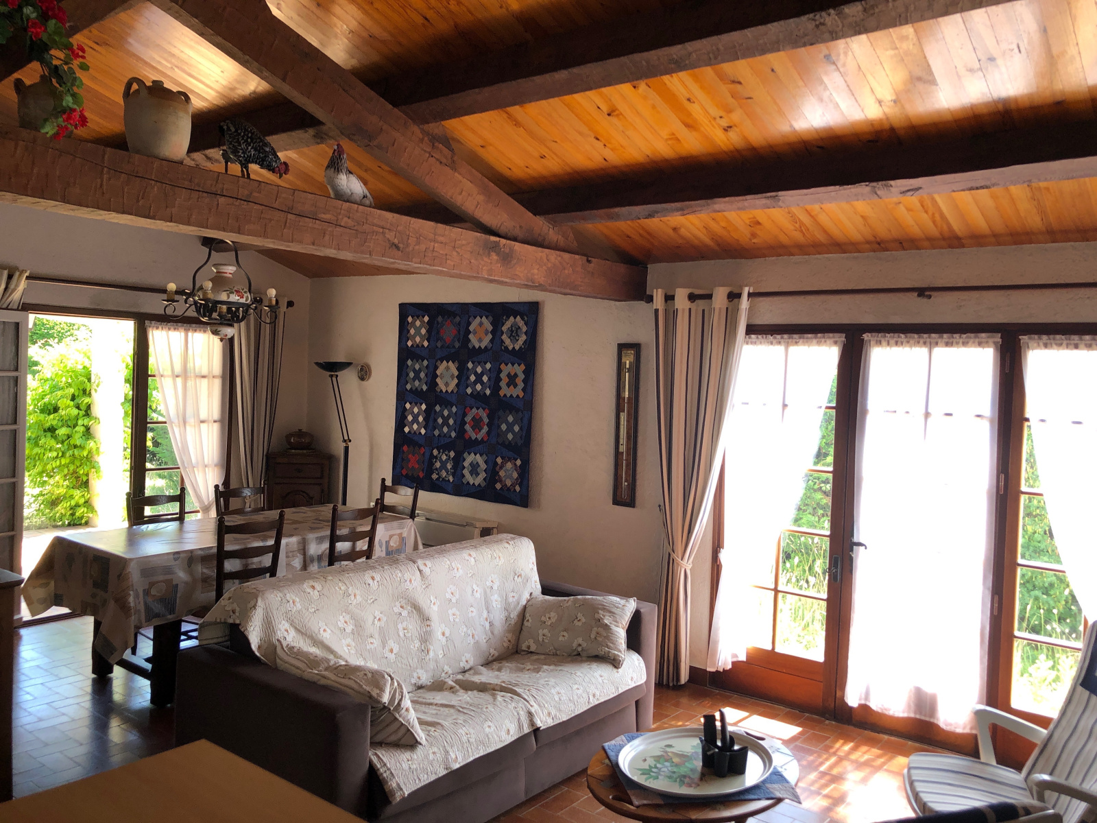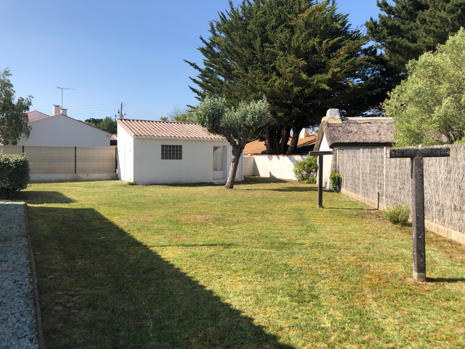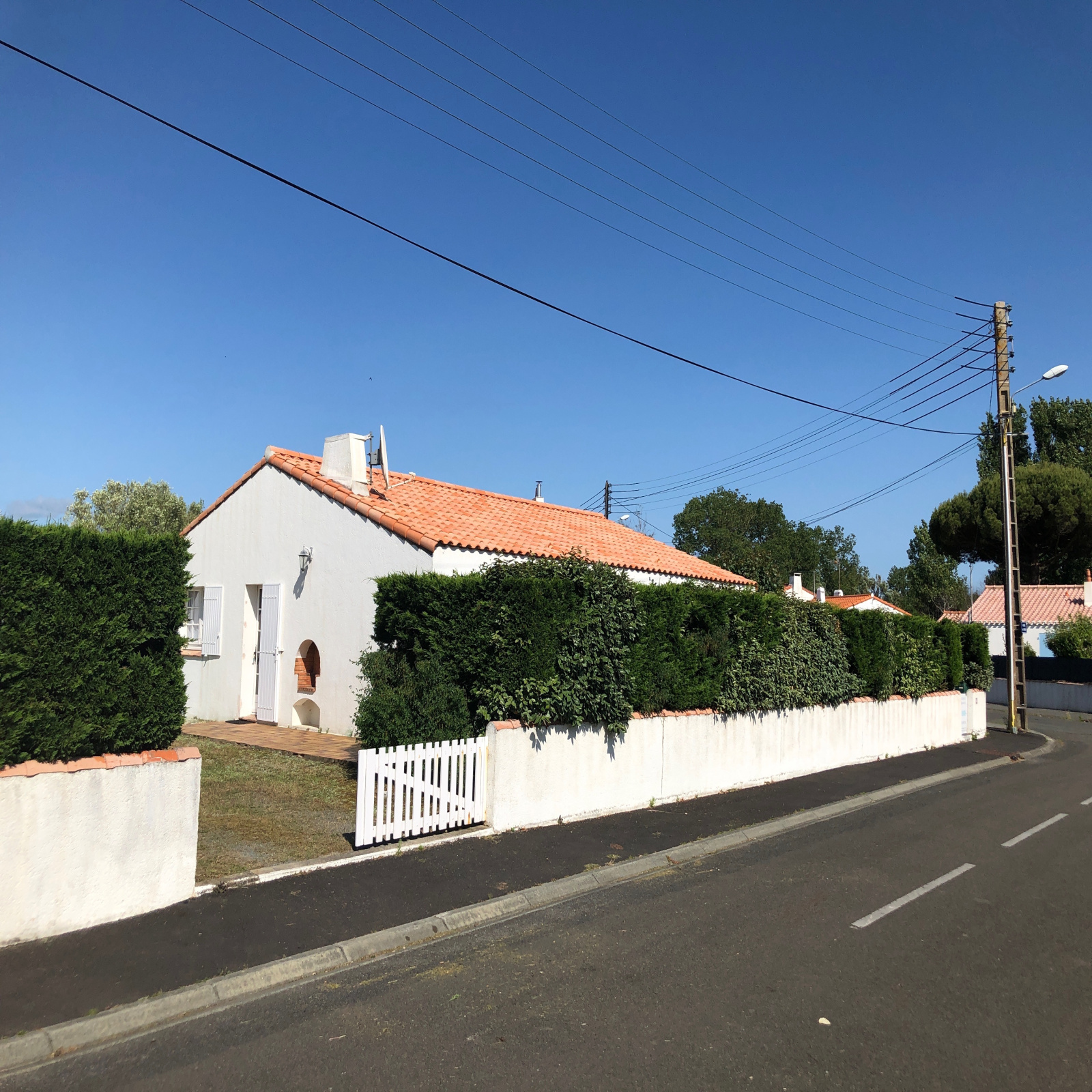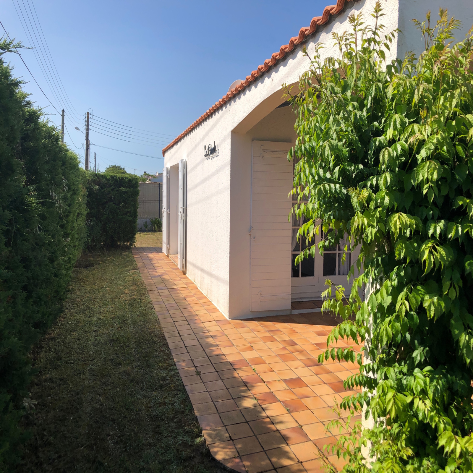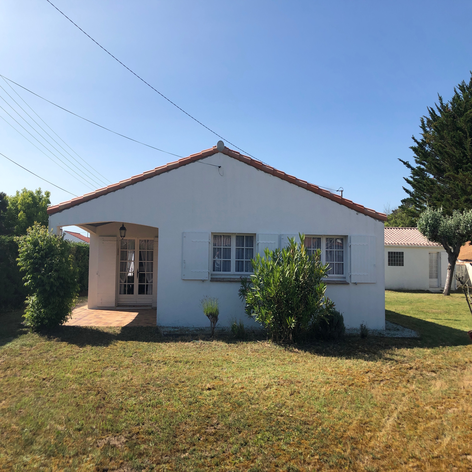 Quartier des Dix Ecus - Avenue du Denier, sur un terrain clos de 752 m² à 800 m de la Plage des Demoiselles, maison T4 de plain-pied de construction traditionnelle, avec un garage indépendant, comprenant: une cuisine ouverte sur un séjour avec une cheminée donnant sur une terrasse couverte, une lingerie, trois chambres avec chacune un placard, une salle de bains et des WC indépendants - Aucune mitoyenneté - Toiture refaite - Maison très bien entretenue.