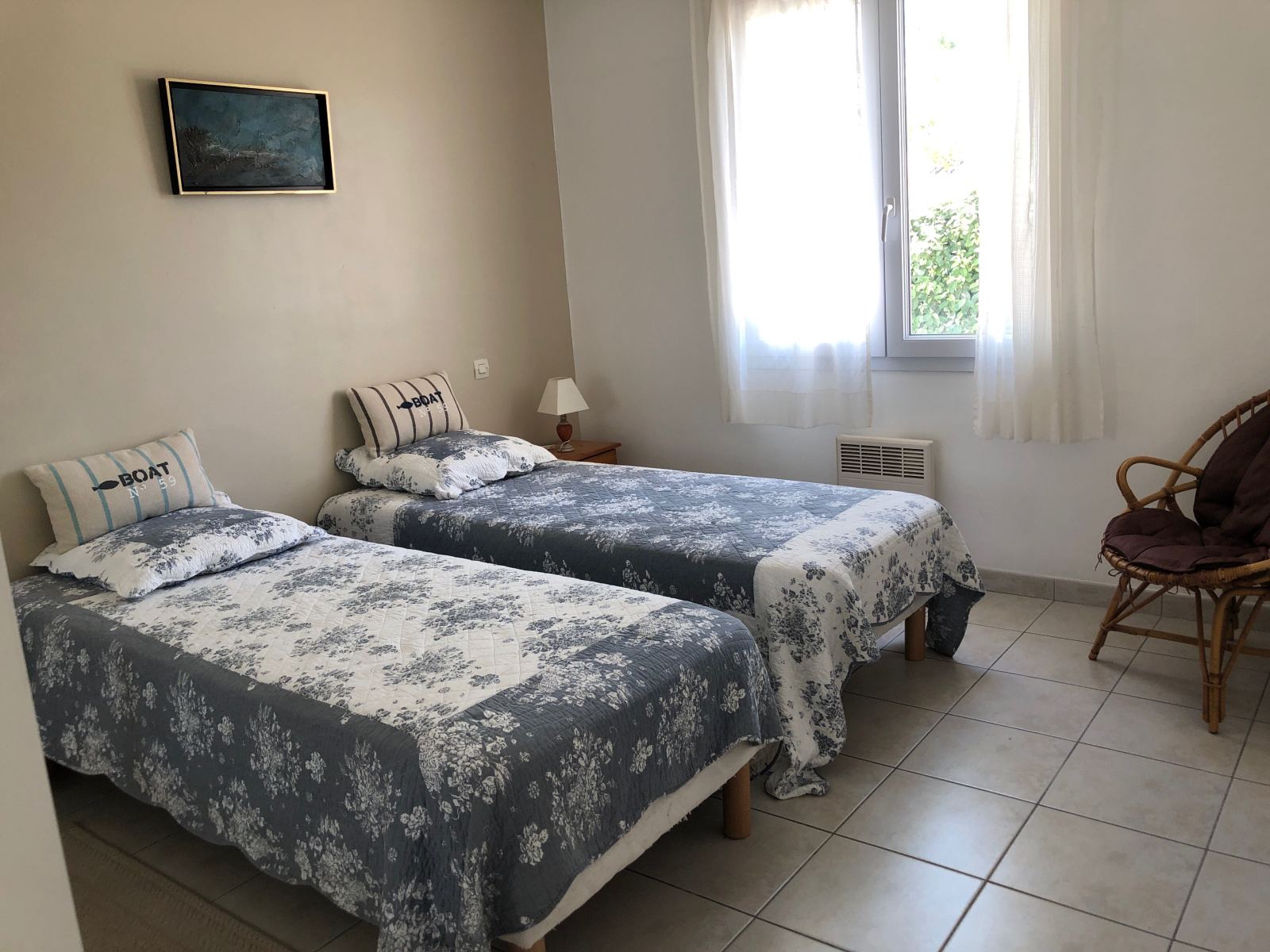 A 350 m de la Plage des Demoiselles, au calme d'une impasse, sur un terrain clos de 208 m², cette maison de plain-pied de type 3, avec un garage de 15 m², construite en 1996, se compose d'une cuisine équipée ouverte sur un séjour traversant très lumineux donnant sur deux terrasses, d'une dégagement desservant deux chambres avec chacune un placard et dont une avec une salle d'eau, une deuxième salle d'eau et des WC indépendants - 71 m² habitables - Double vitrage - Très soignée.