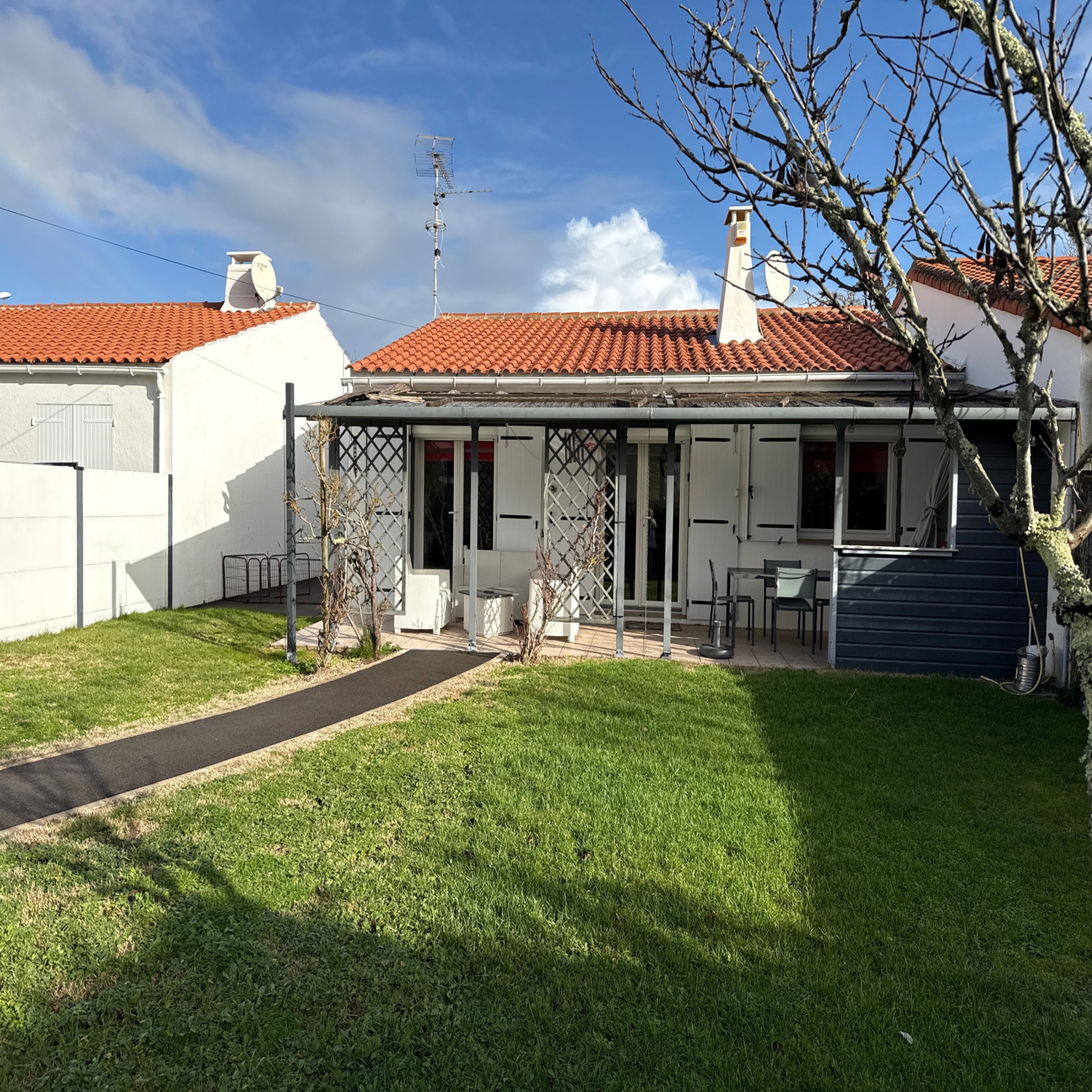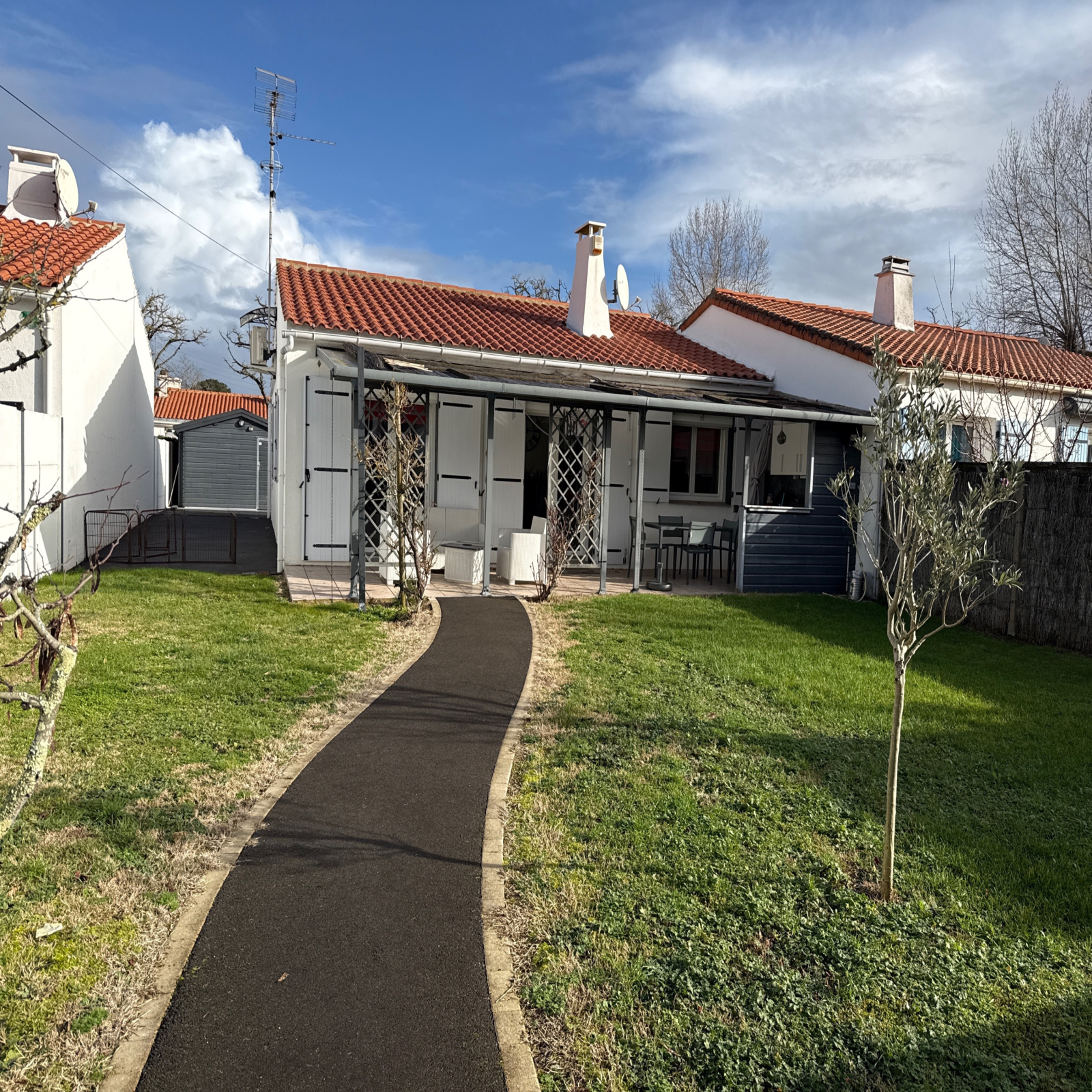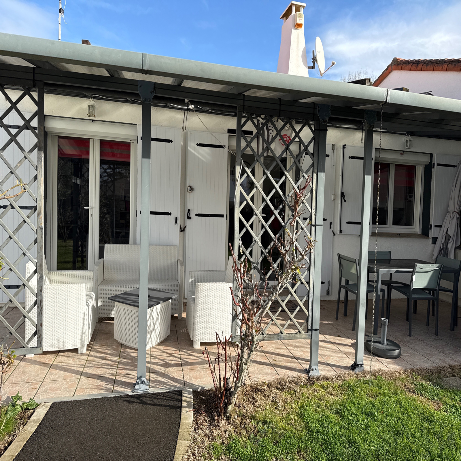 Quartier des Dix Ecus - Sur un terrain d'environ 400 m², maison meublée de type 3 de plain pied comprenant: une cuisine équipée ouverte sur un séjour donnant sur une terrasse couverte sans vis-à-vis exposée sud-ouest, une lingerie, deux chambres dont une avec un dressing, une salle d'eau refaite et des WC indépendants - Double vitrage - Climatisation réversible - Volets roulants électriques centralisés - Aire de stationnement bitumée - Grand cabanon de rangement.