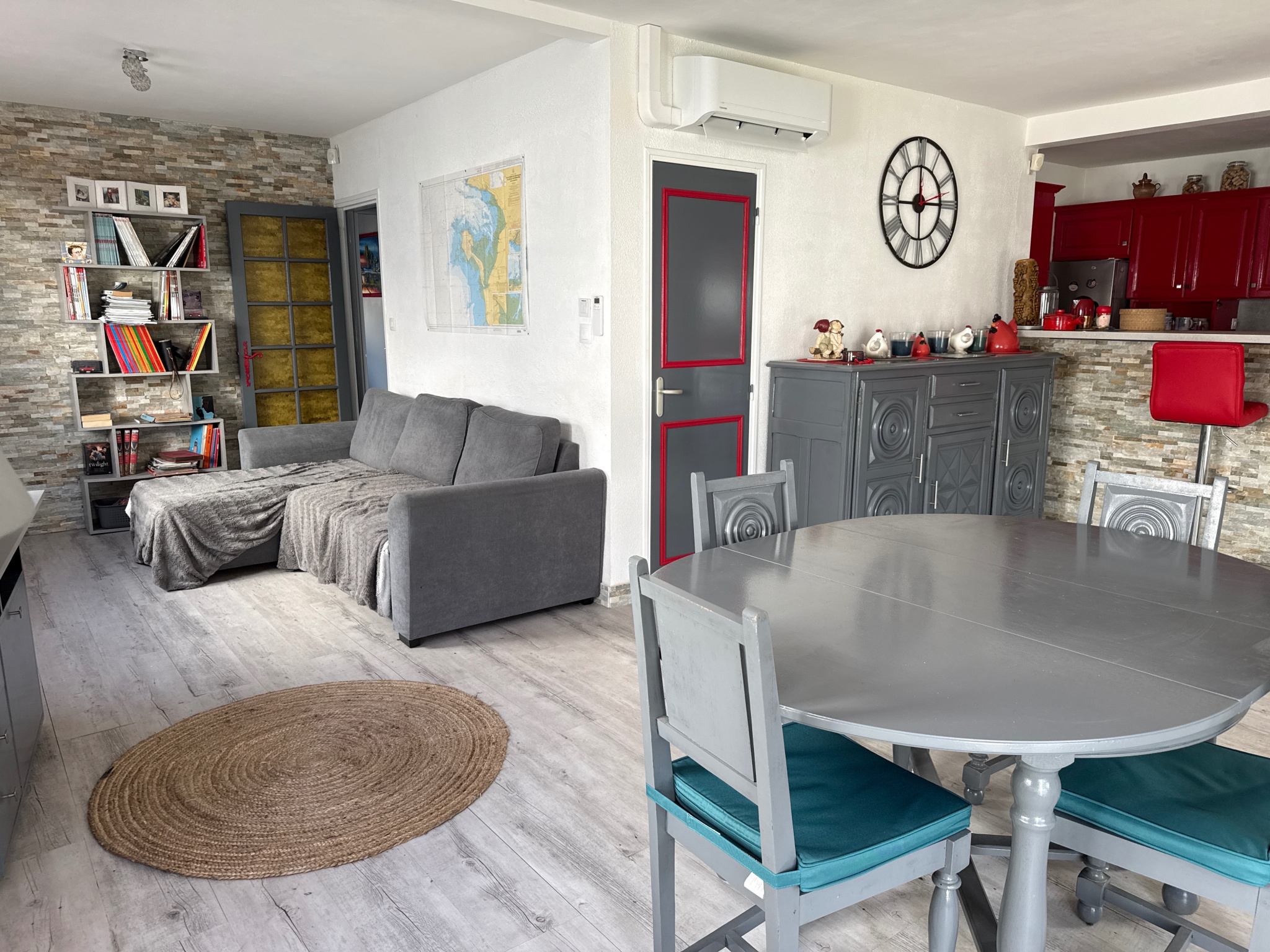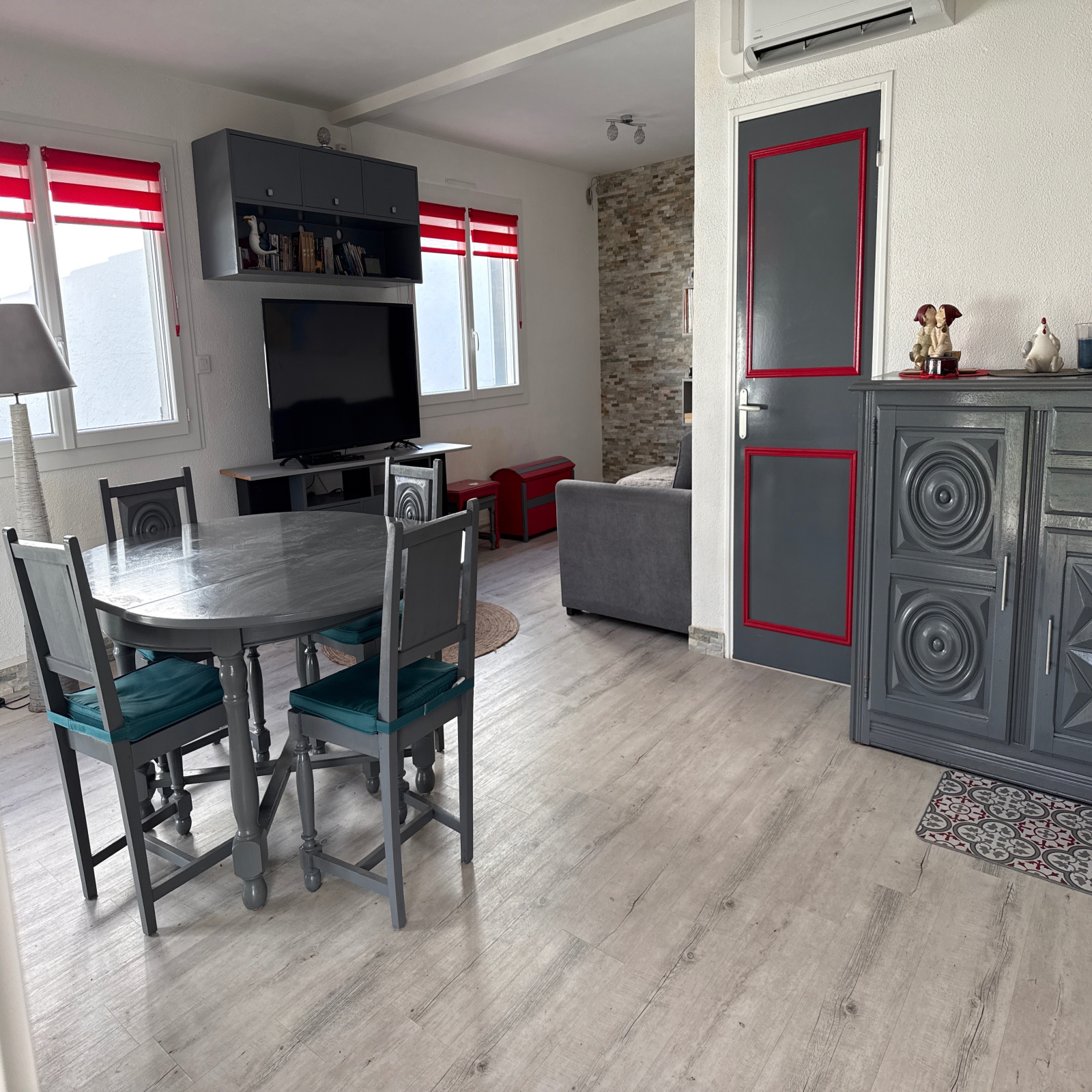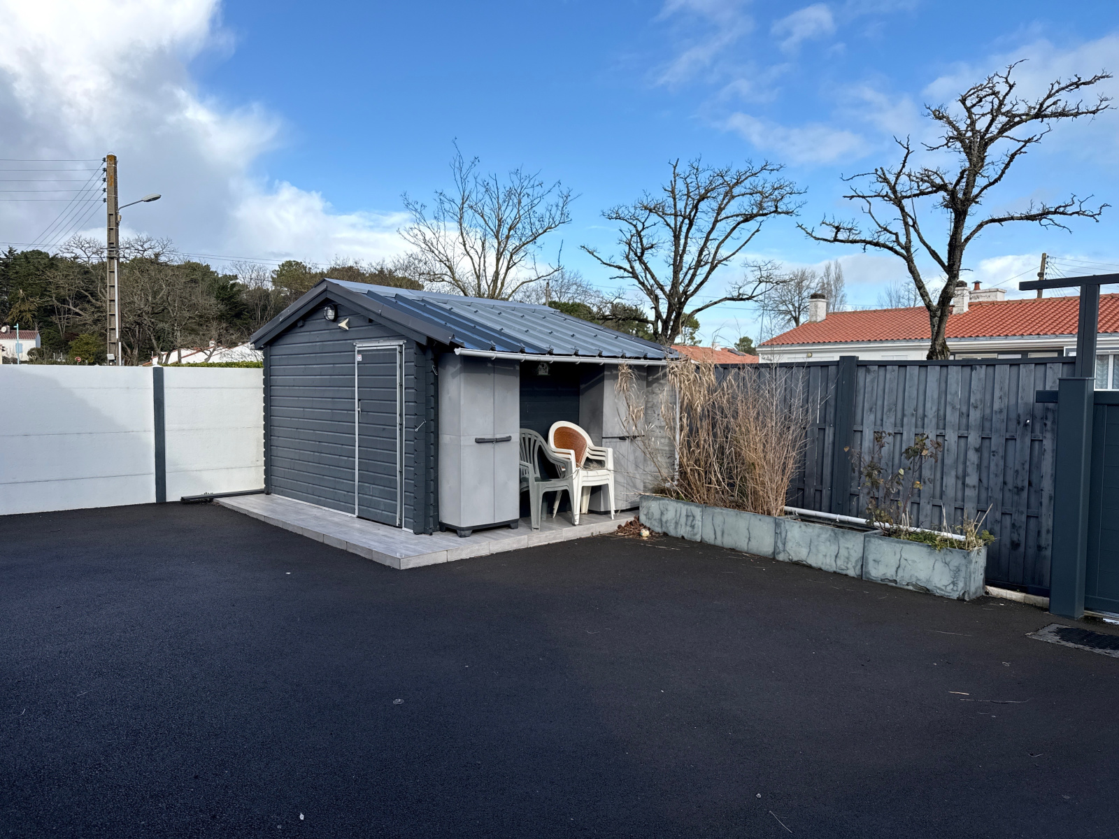 Quartier des Dix Ecus - Sur un terrain d'environ 400 m², maison meublée de type 3 de plain pied comprenant: une cuisine équipée ouverte sur un séjour donnant sur une terrasse couverte sans vis-à-vis exposée sud-ouest, une lingerie, deux chambres dont une avec un dressing, une salle d'eau refaite et des WC indépendants - Double vitrage - Climatisation réversible - Volets roulants électriques centralisés - Aire de stationnement bitumée - Grand cabanon de rangement.