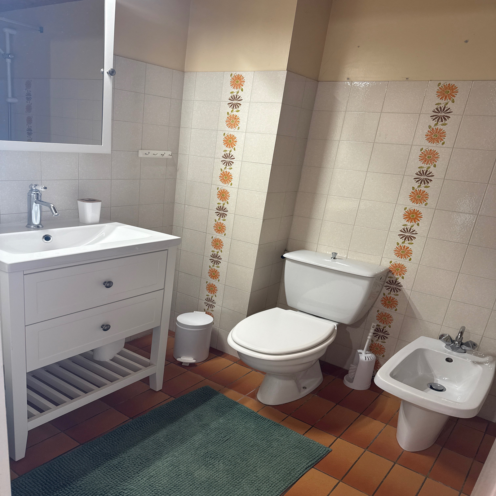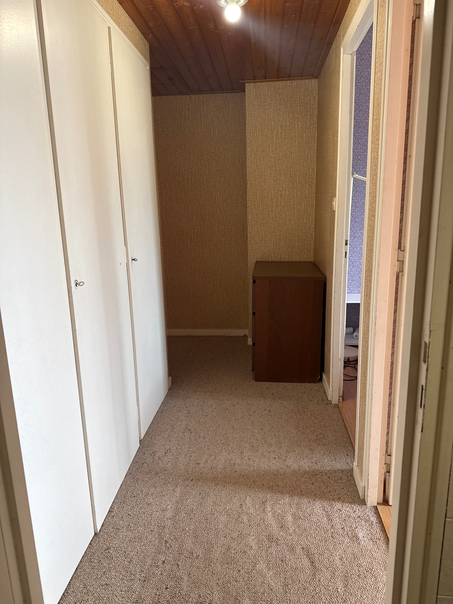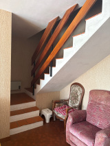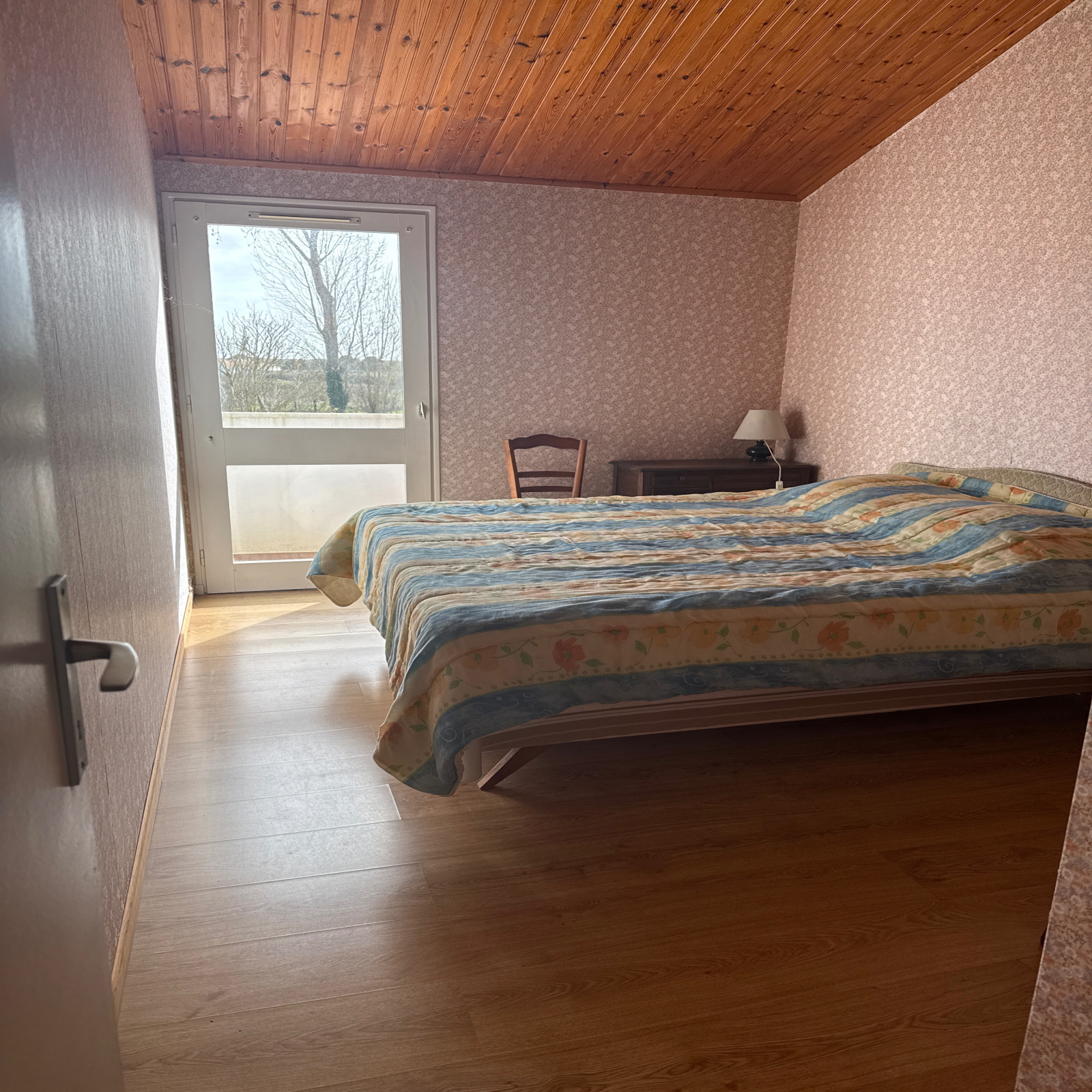 A l'étage: d'un dégagement avec un placard, d'une salle de bains avec des WC et deux deux chambres donnant sur un balcon.