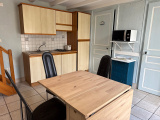 Quartier des Demoiselles - Proche de la plage, de la forêt et des commerces ouverts à l'année, pavillon hors copropriété, avec un jardinet terrassé sans vis-à-vis, comprenant: un coin cuisine équipé donnant sur un séjour, une salle d'eau, des WC, deux coins nuit mansardés avec chacun un velux et de nombreux rangements et un grenier - Débarras extérieur pouvant abriter des vélos - Double vitrage - Chauffage électrique - Possibilité de stationner un véhicule dans le jardinet - Beaucoup de charme et habitable de suite.