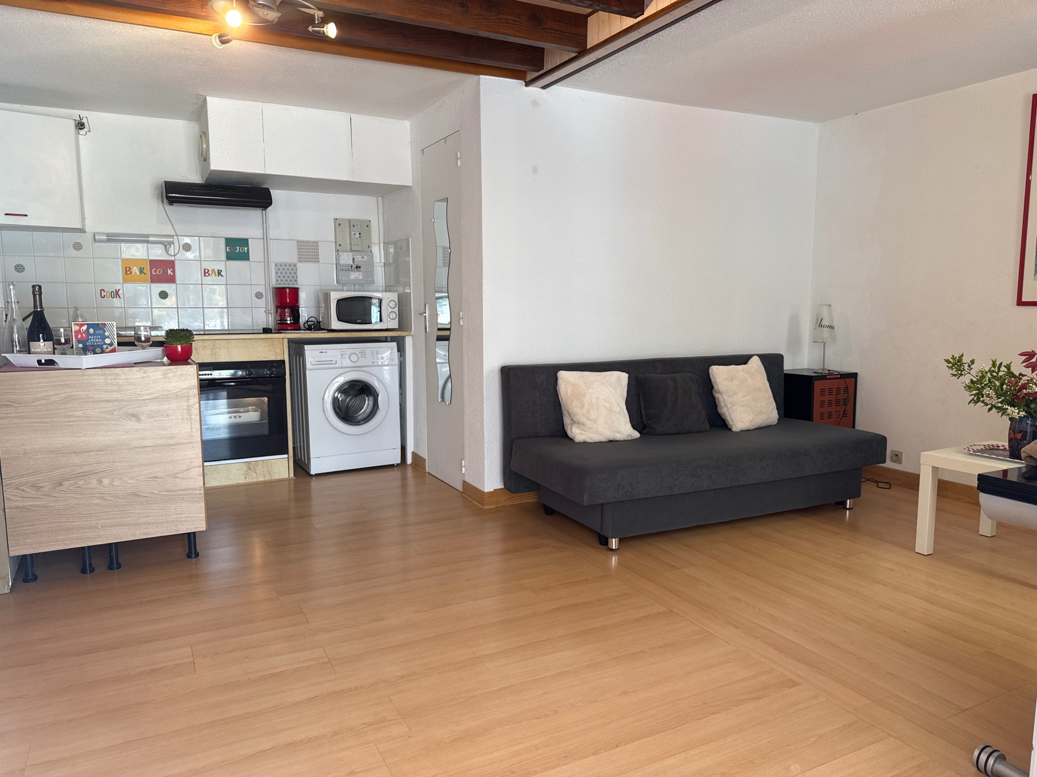 Dans une résidence à faibles charges, pavillon meublé, avec un parking privé, comprenant: un coin cuisine équipé ouvert sur un séjour donnant sur un jardinet clos terrassé, une salle d'eau avec des WC et une mezzanine rallongée avec un velux servant de coin nuit avec plusieurs couchages - Double vitrage - Chauffage électrique.