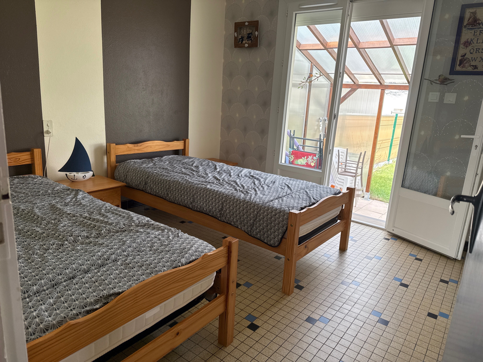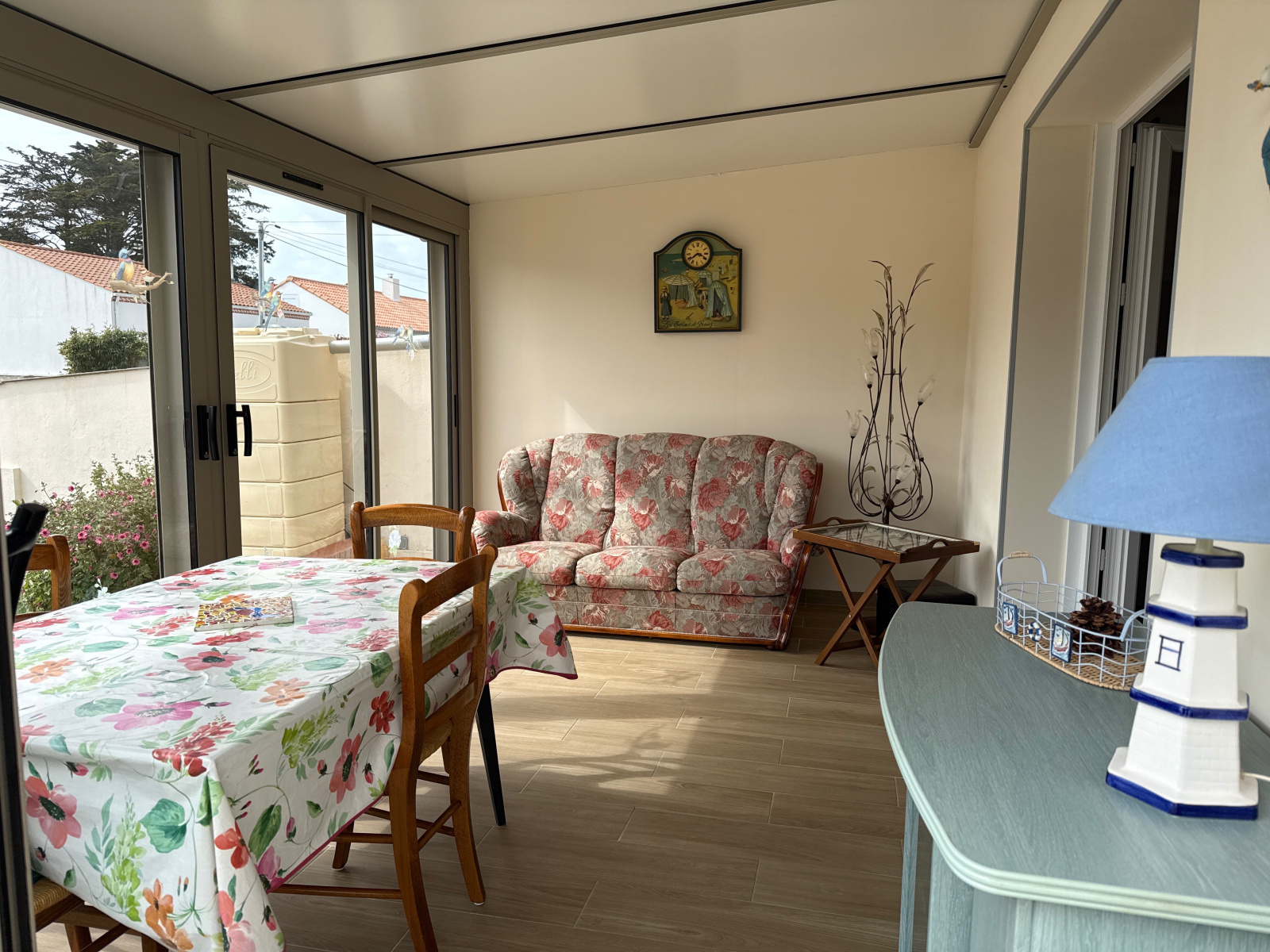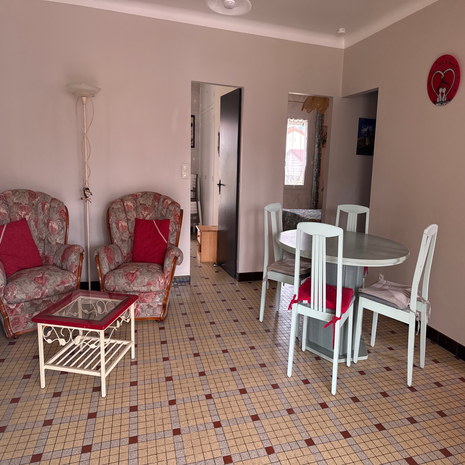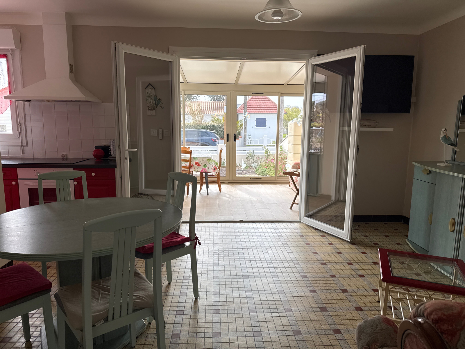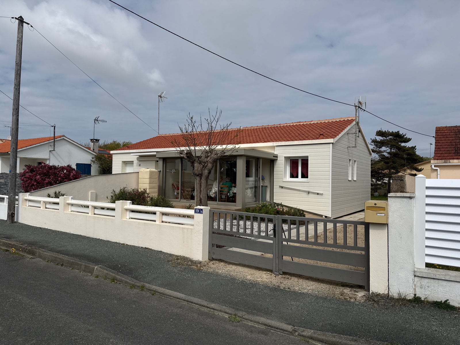 Avenue des Résédas - Sur un terrain de 431 m², maison meublée de type 3 comprenant: une cuisine équipée ouverte sur un séjour donnant sur une véranda exposée sud-ouest, deux chambres avec chacune un placard, une salle d'eau avec une fenêtre et des WC indépendants avec une fenêtre - Double vitrage - Volets roulants électriques - Terrasse couverte à l'arrière de la maison - Possibilité de stationner dans le jardin.